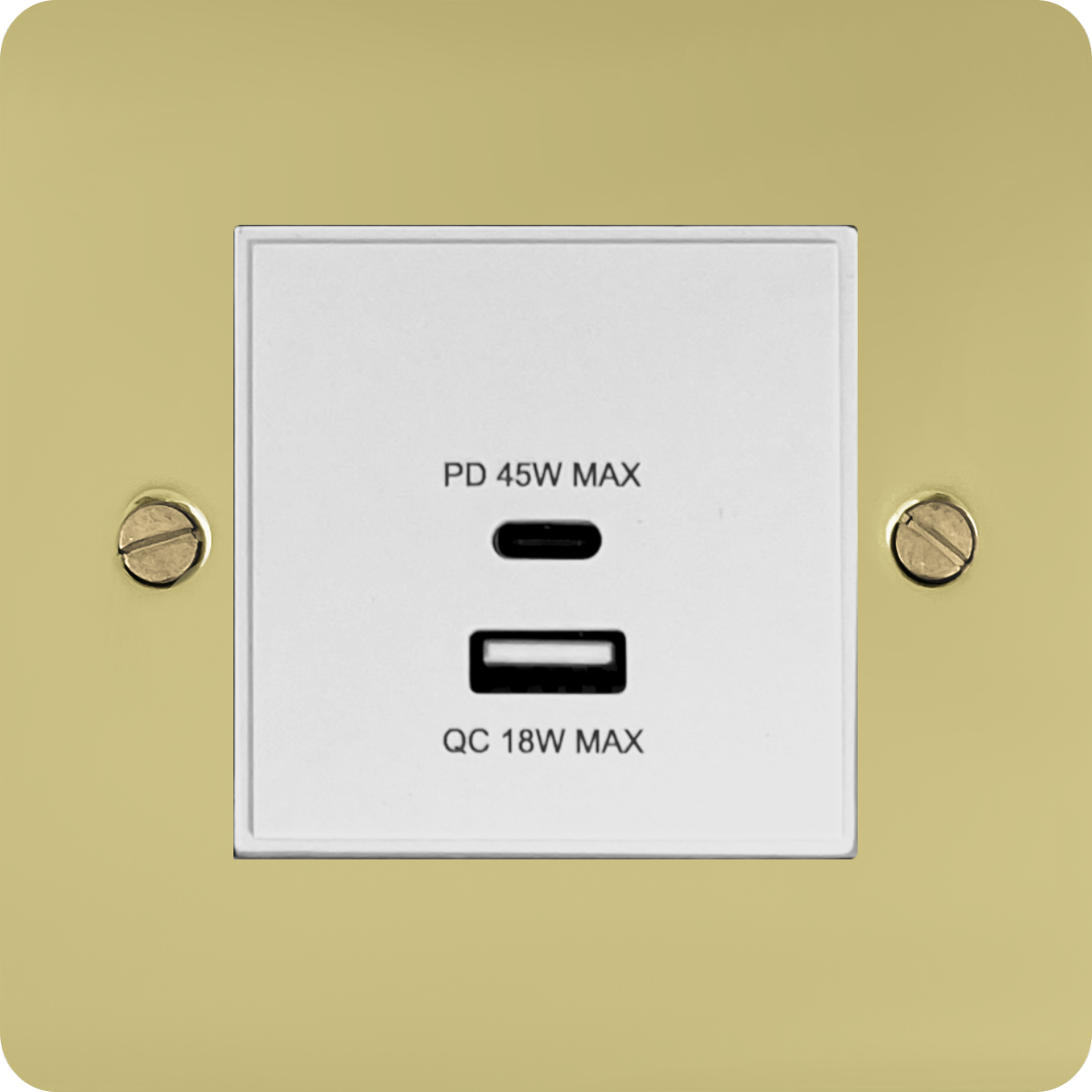 Flat Polished Brass Unlacquered USB Charger (Dual USB A + C Quick Charge) (1 Gang/White Insert) - G+H FBUL43W