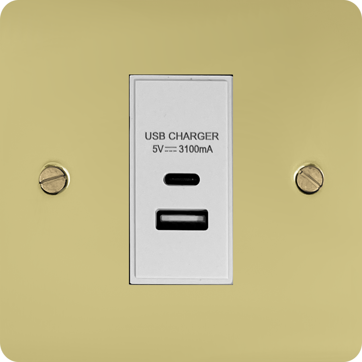 Flat Polished Brass Unlacquered USB Charger (USB-A and USB-C) (1 Gang/White Insert) - G+H FBUL41W