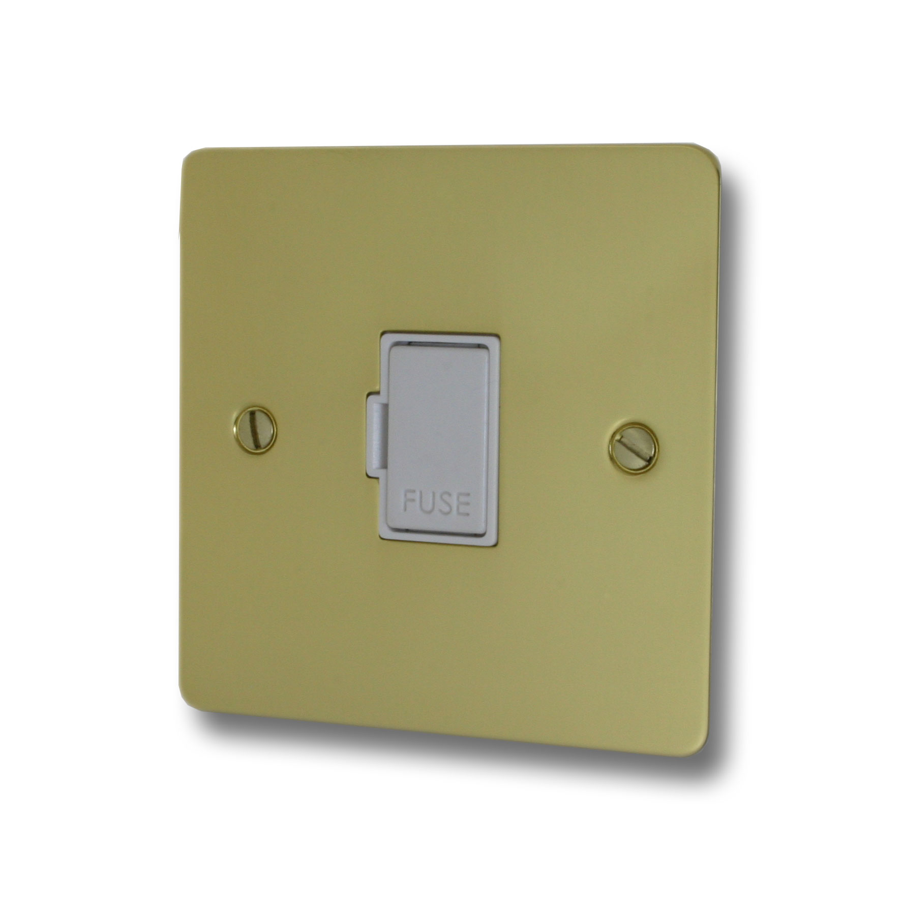 Flat Polished Brass Unswitched Fused Spur (White Insert)