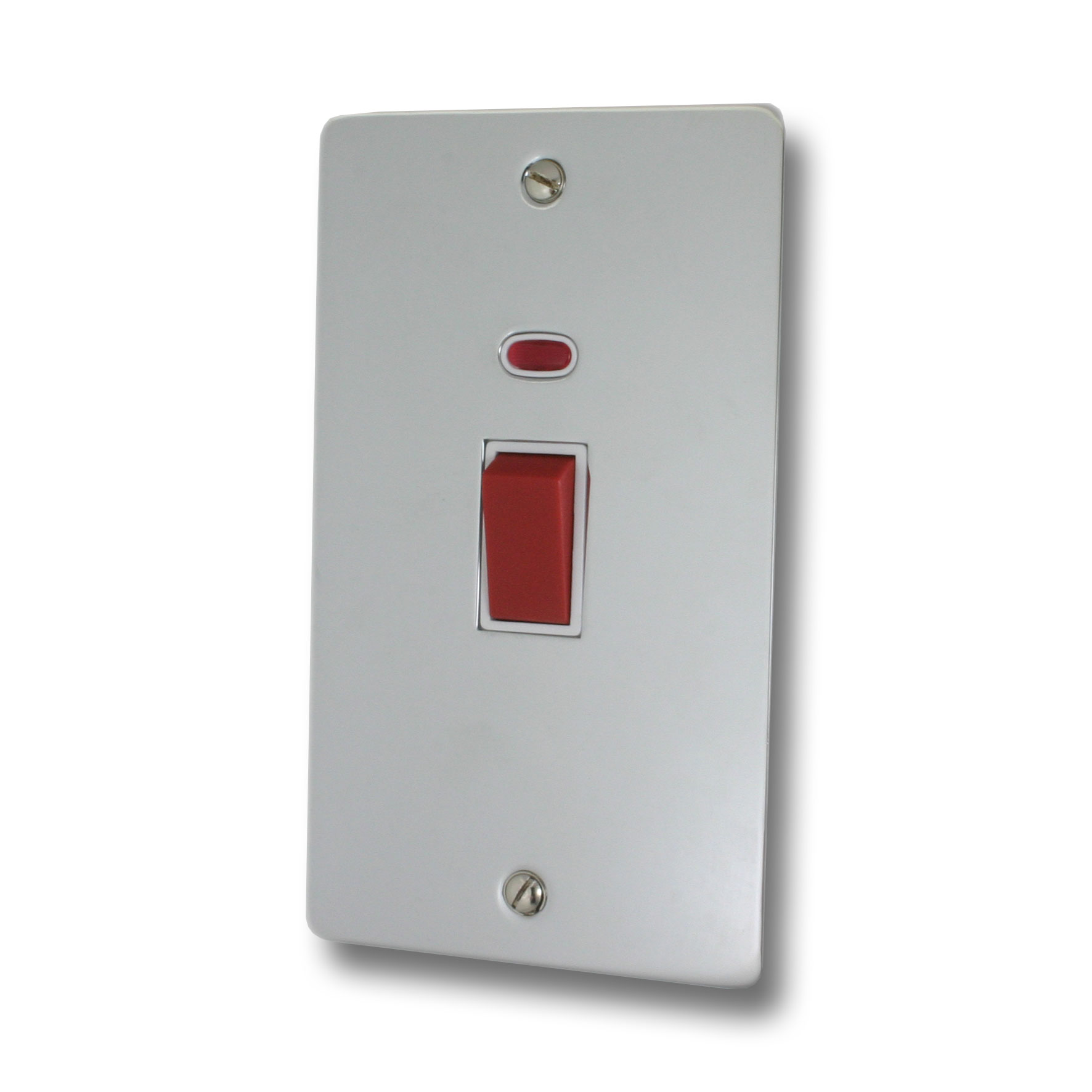 Flat Polished Chrome 45A DP Switch (White Insert/Vertical Plate) - G+H FC28W