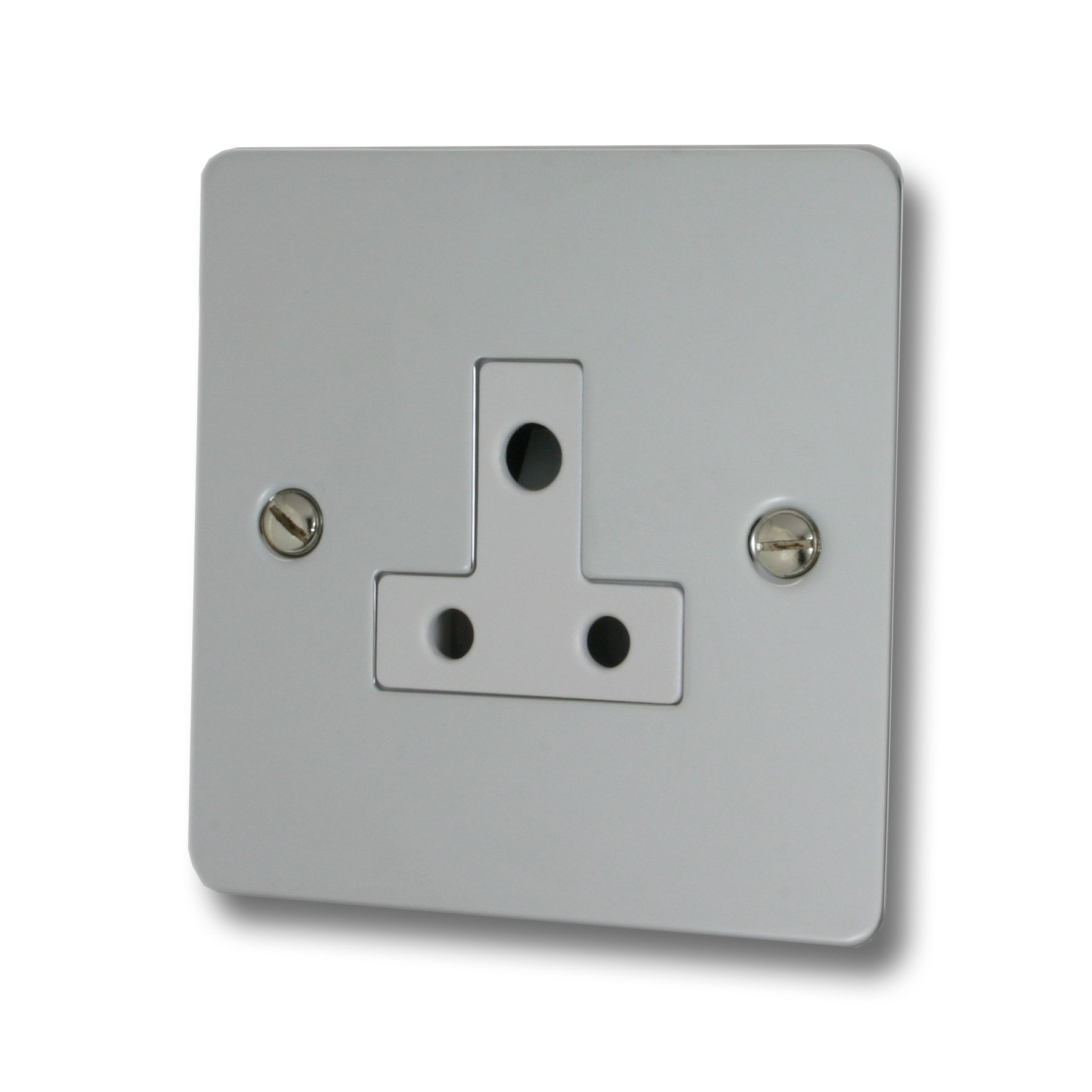 Flat Polished Chrome 5A 3 Pin Socket (White Insert)