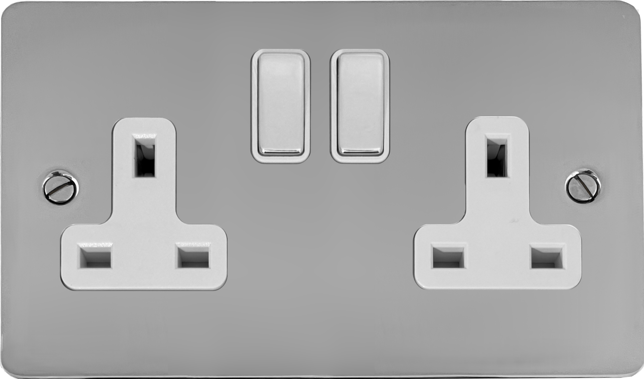 Flat Polished Chrome Double Socket (White Insert/Chrome Switches) - G+H FC210