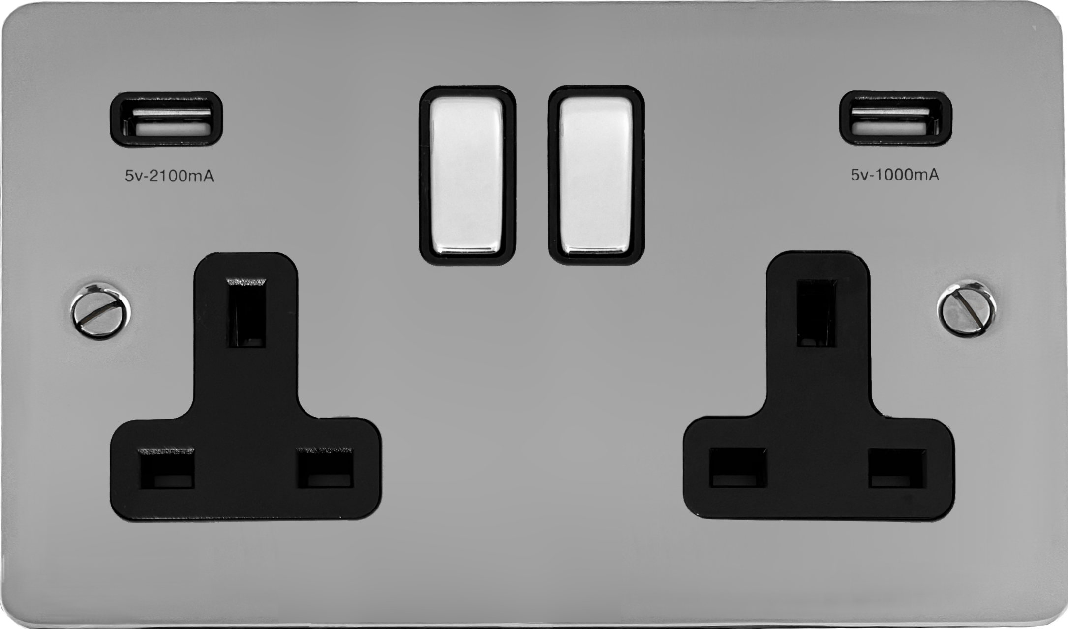Flat Polished Chrome Double Socket with USB (Chrome Switches/Black insert) - G+H FC3910