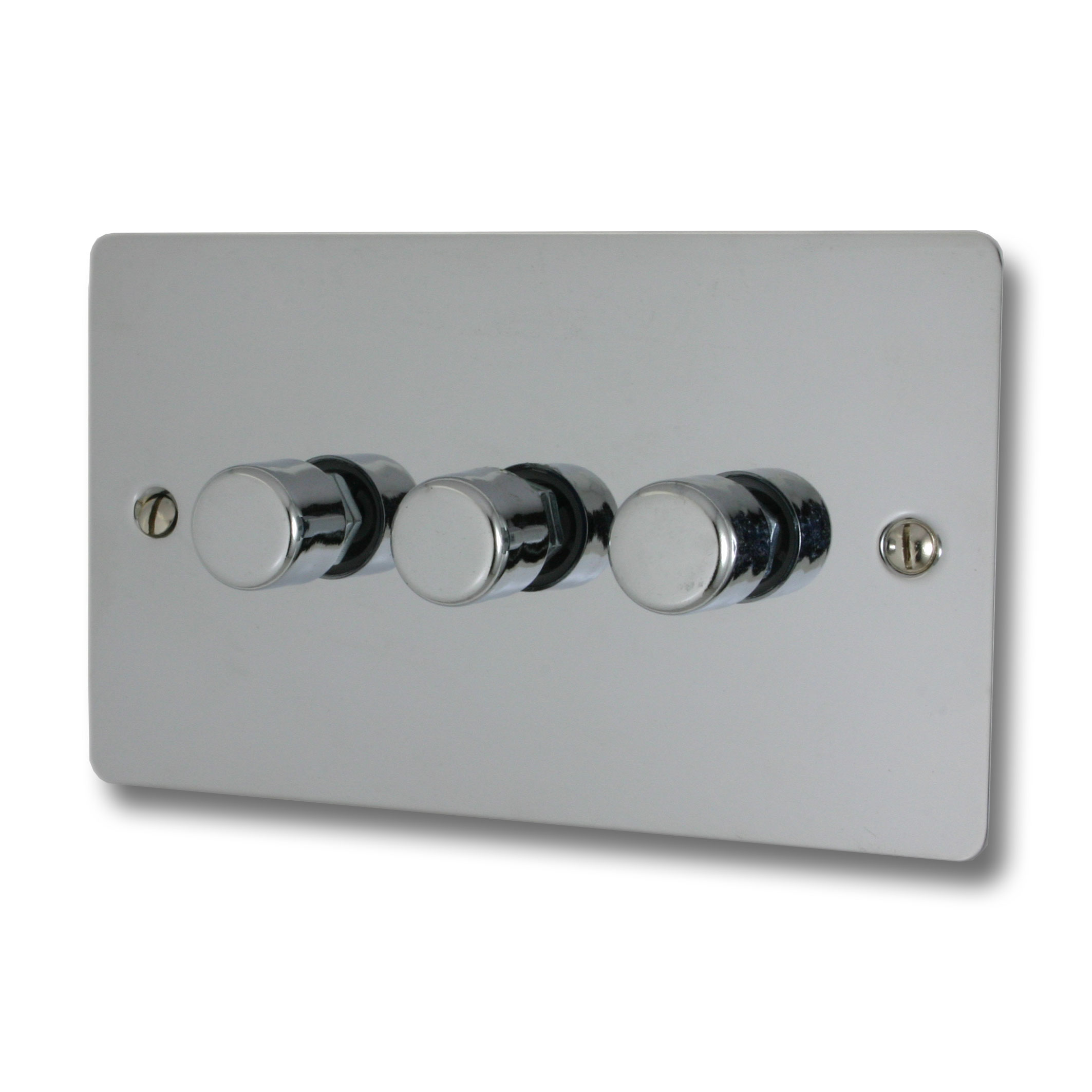 Flat Polished Chrome LED Dimmer (3 Gang)
