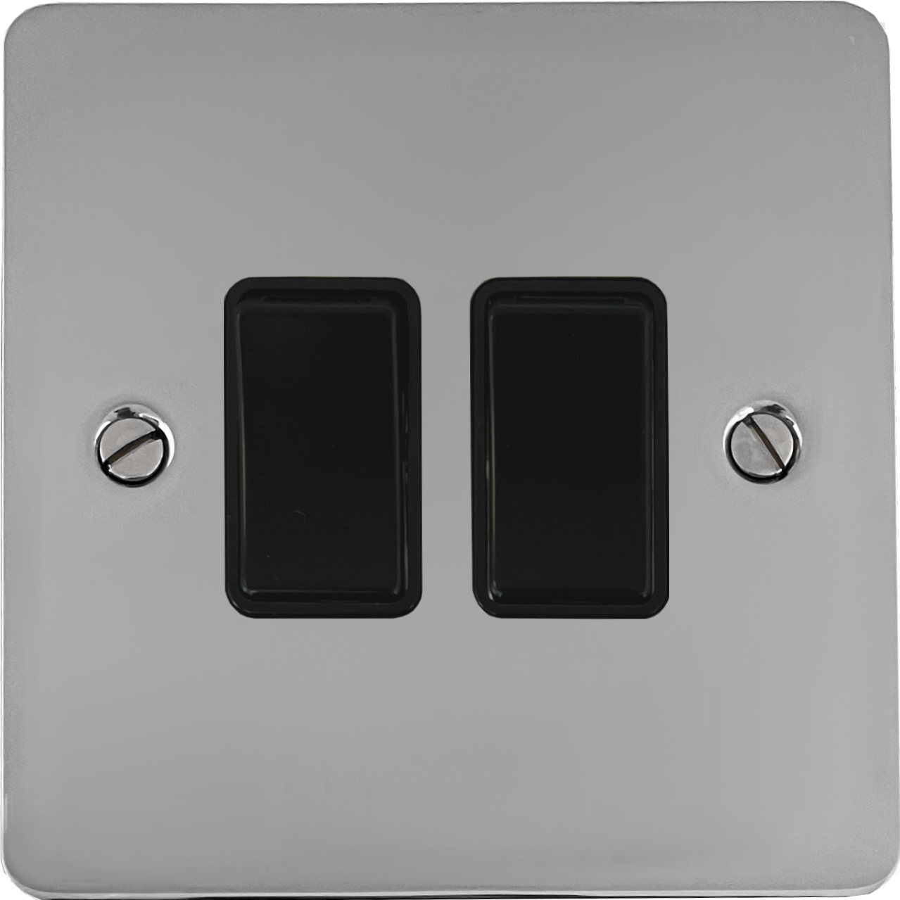 Flat Polished Chrome Light Switch (2 Gang/Black Switches) - G+H FC2B