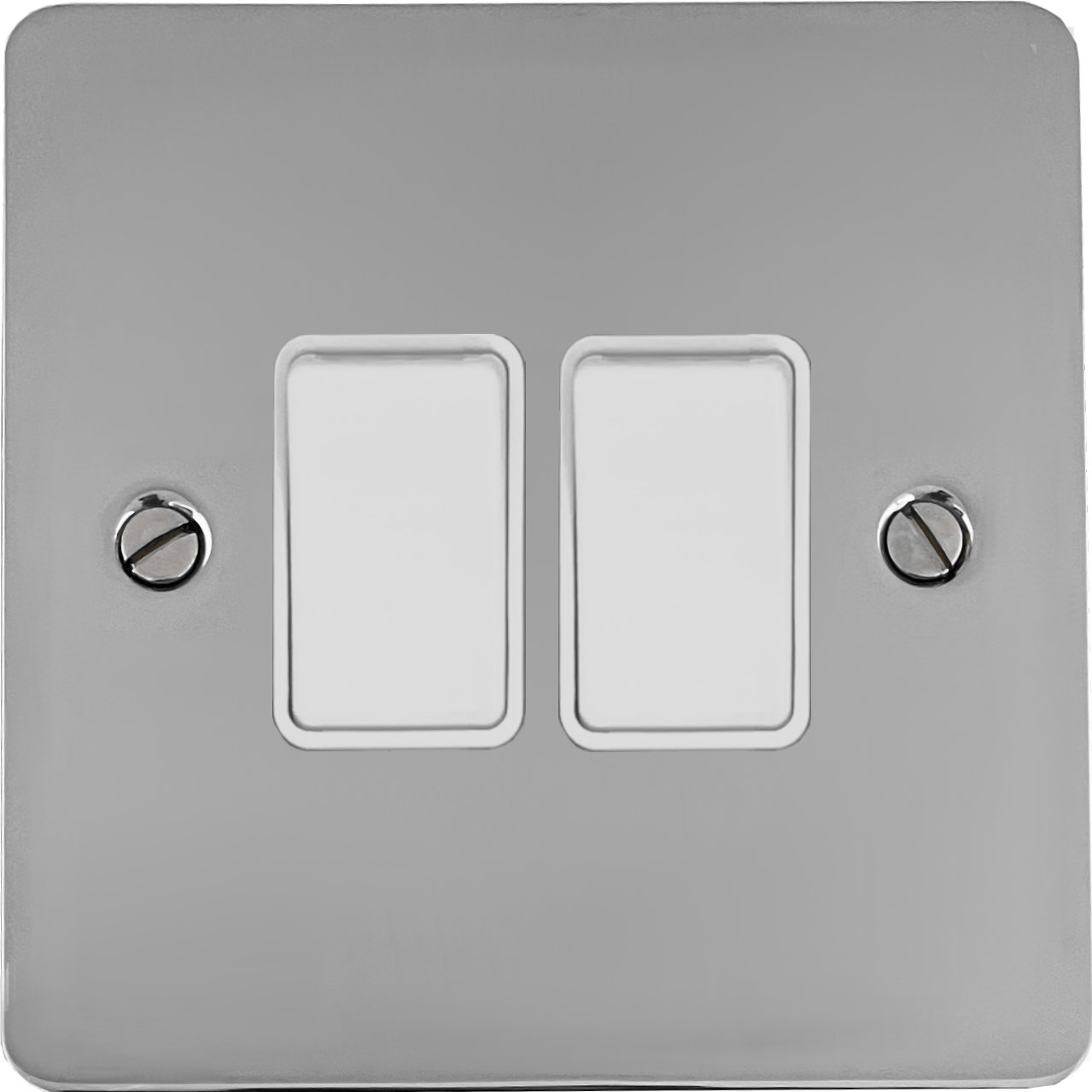 Flat Polished Chrome Light Switch (2 Gang/White Switches) - G+H FC2W