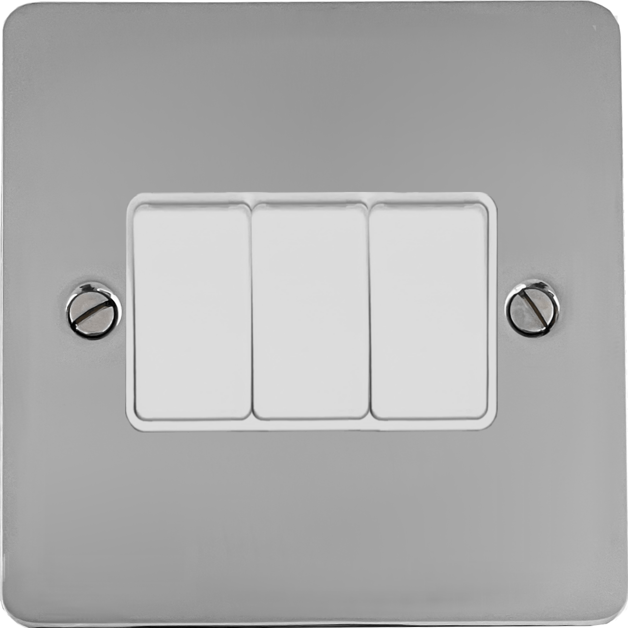 Flat Polished Chrome Light Switch (3 Gang/White Switches) - G+H FC3W