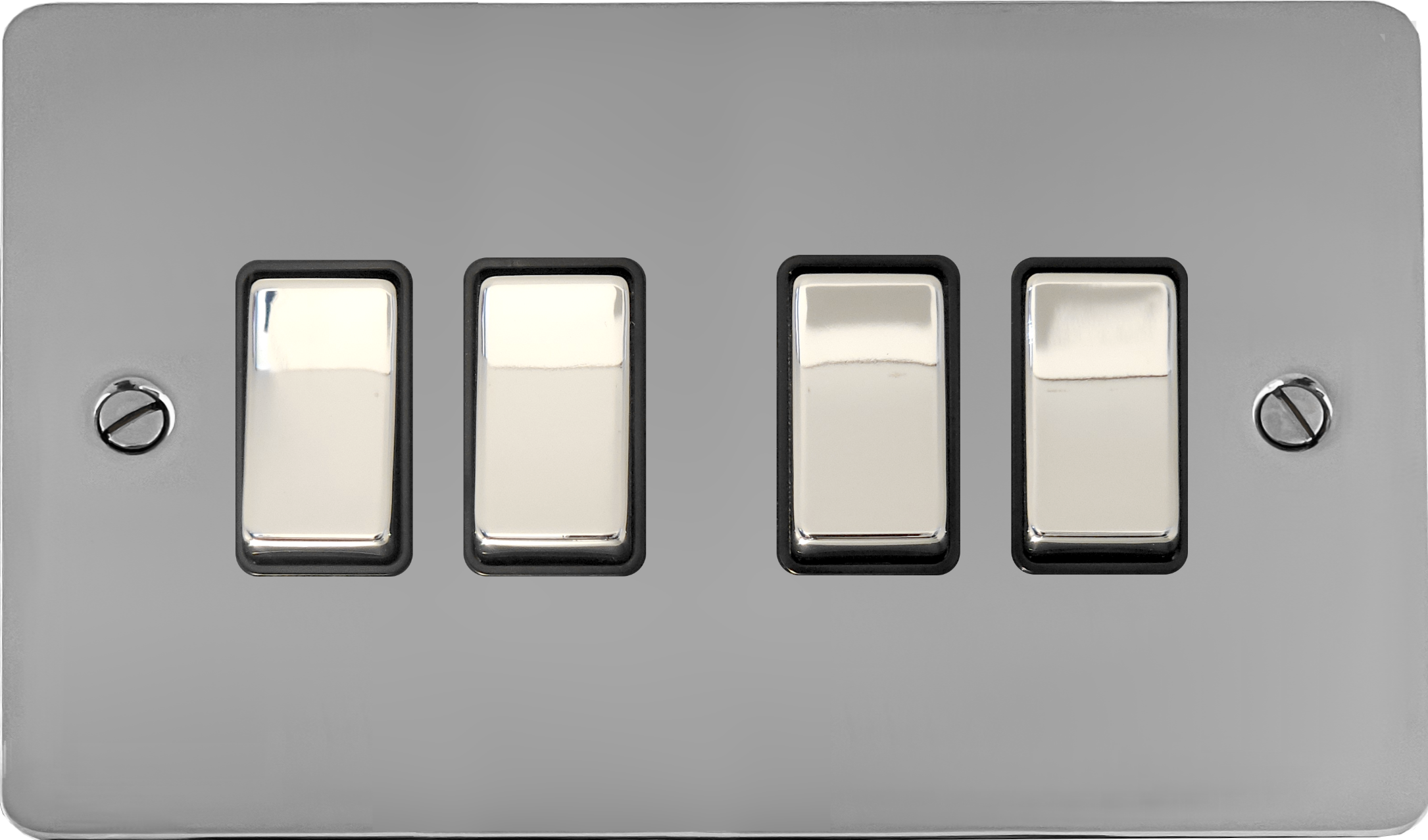 Flat Polished Chrome Light Switch (4 Gang/Black Insert/Chrome Switches) - G+H FC304