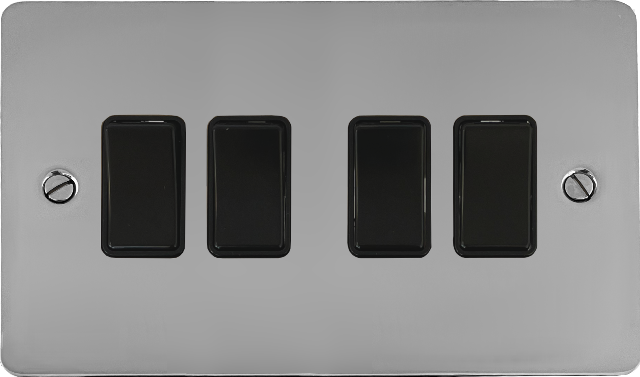 Flat Polished Chrome Light Switch (4 Gang/Black Switches) - G+H FC4B