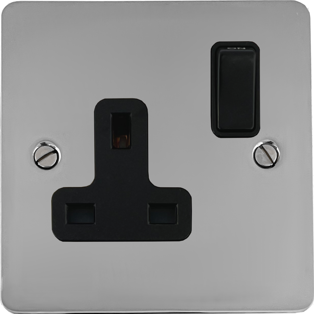 Flat Polished Chrome Single Socket (Black Switch) - G+H FC9B