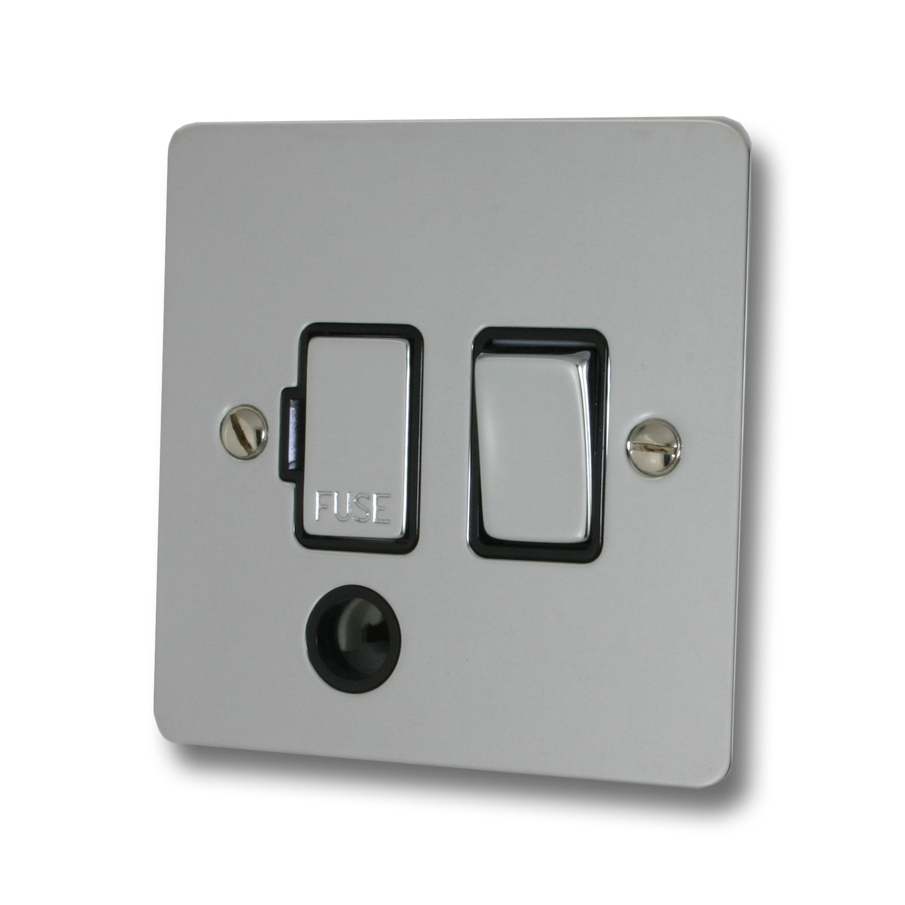 Flat Polished Chrome Switched Fused Spur with Flex Outlet (Black Insert/Chrome Switch) - G+H FC356