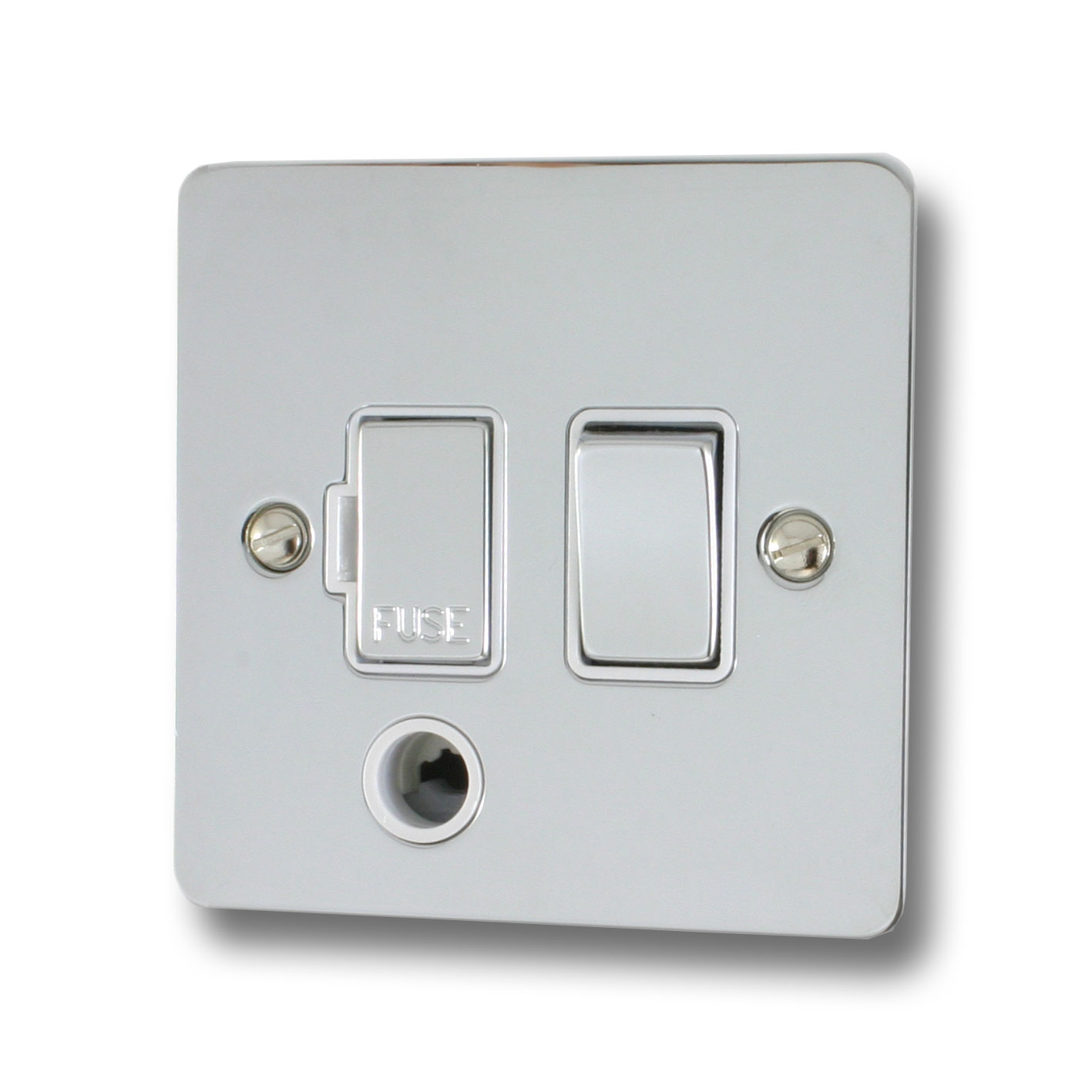 Flat Polished Chrome Switched Fused Spur with Flex Outlet (White Insert/Chrome Switch) - G+H FC256