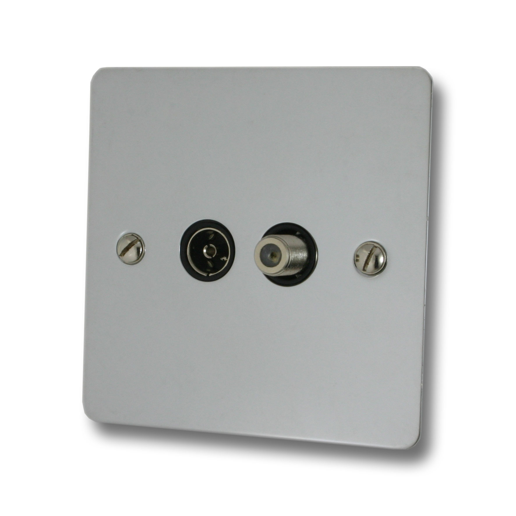 Flat Polished Chrome TV/Satellite Socket (Black Insert) - G+H FC38B