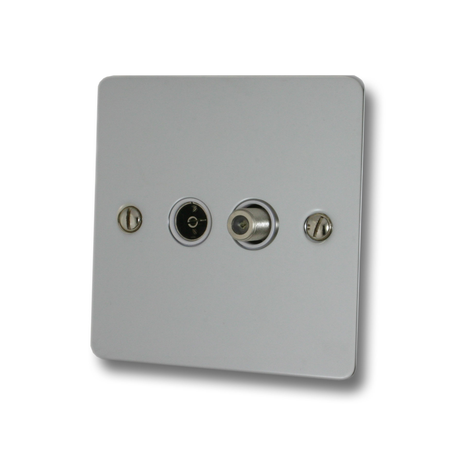 Flat Polished Chrome TV/Satellite Socket (White Insert) - G+H FC38W