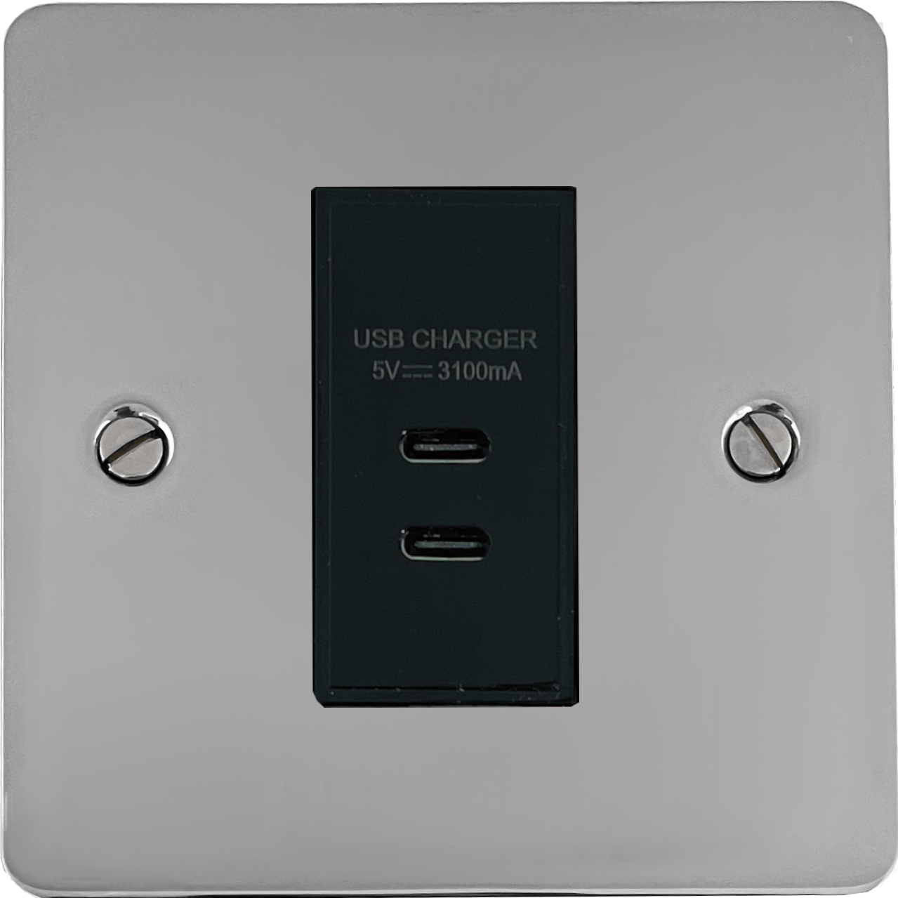 Flat Polished Chrome USB Charger (2x USB-C) (1 Gang/Black Insert) - G+H FC42B