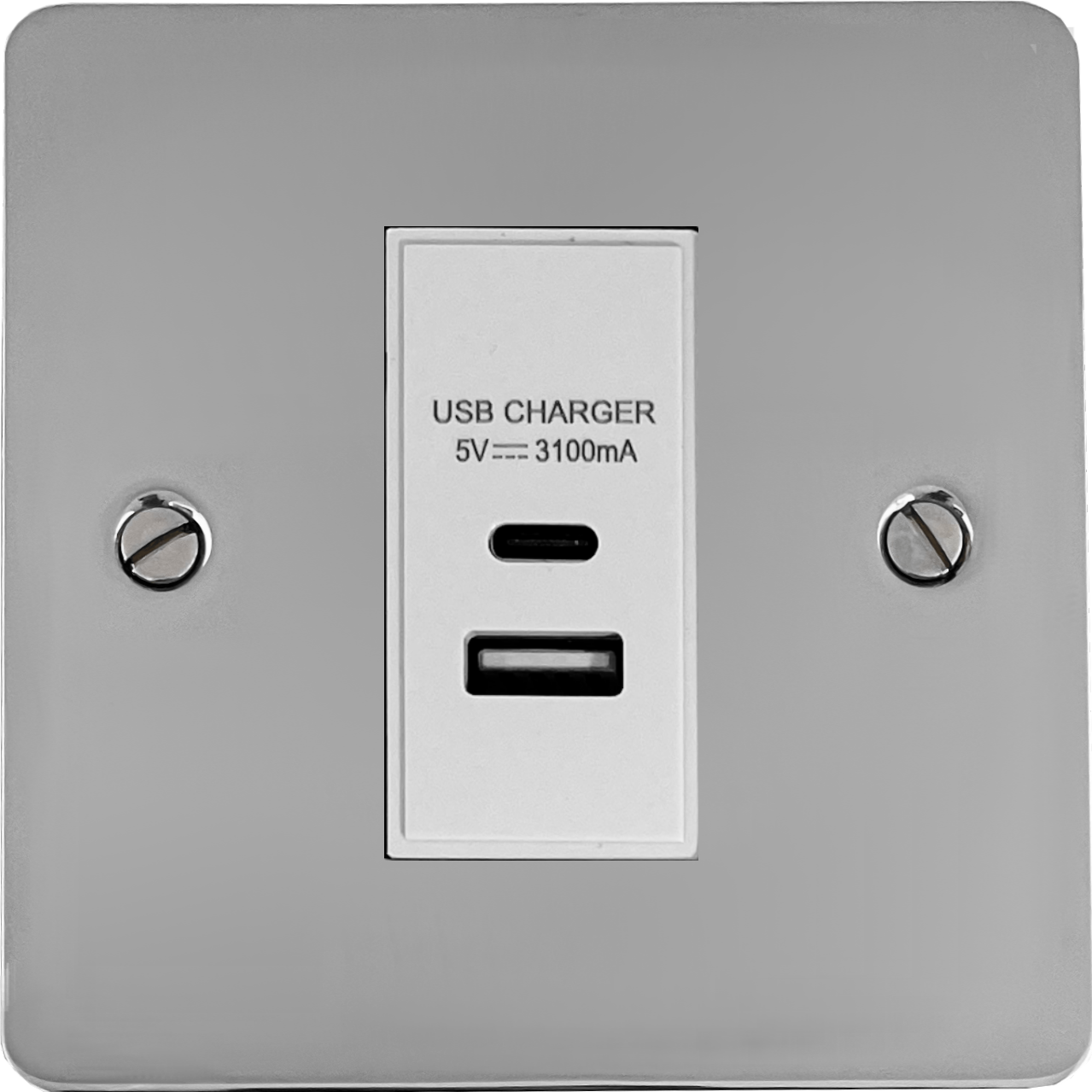 Flat Polished Chrome USB Charger (USB-A and USB-C) (1 Gang/White Insert) - G+H FC41W