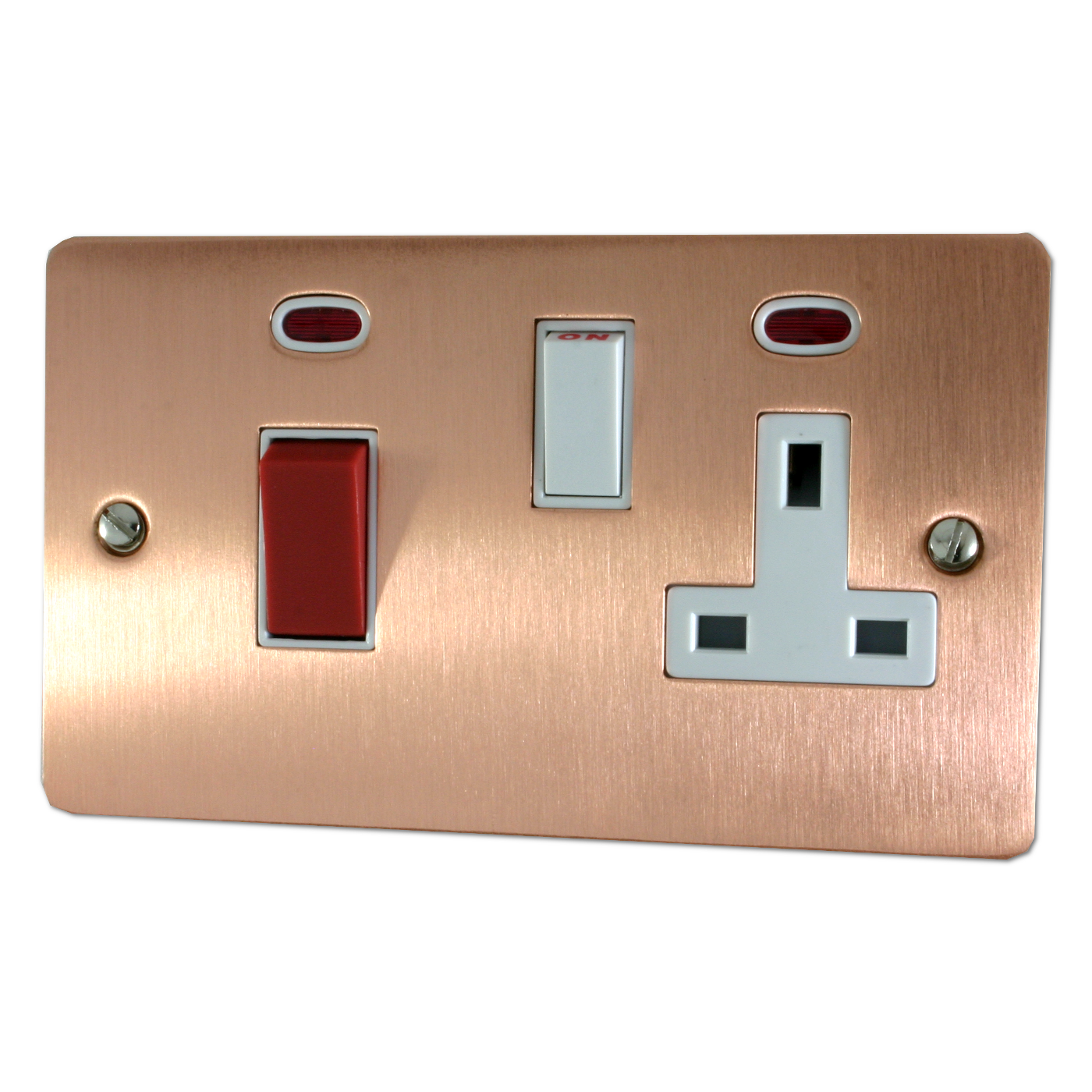 Flat Rose Gold Cooker Switch with Socket (White Switch) - G+H FRG29W