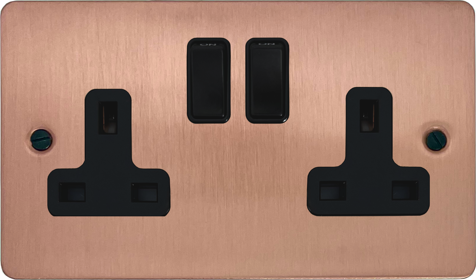 Flat Rose Gold Double Socket (Black Switch) - G+H FRG10B