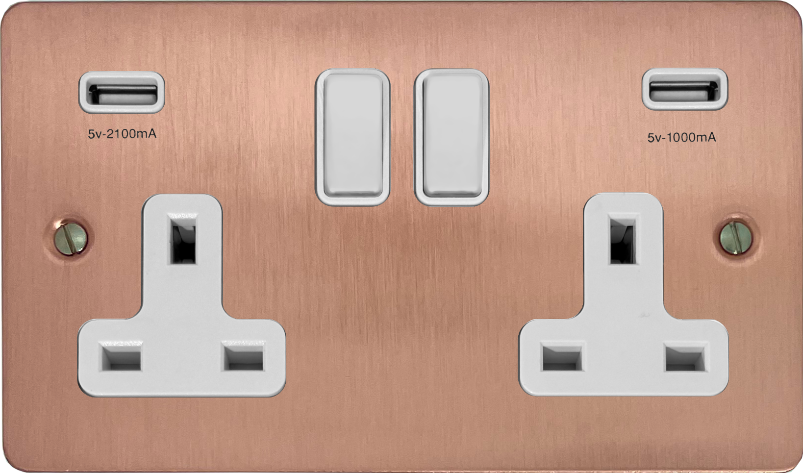 Flat Rose Gold Double Socket with USB (White Switch) - G+H FRG910W