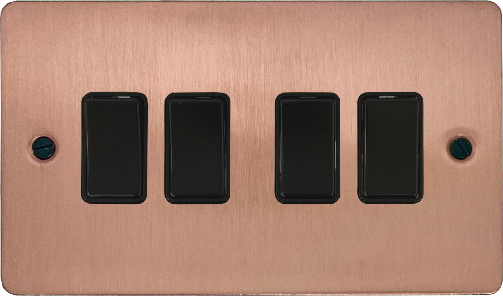 Flat Rose Gold Light Switch (4 Gang/Black Switch) - G+H FRG4B