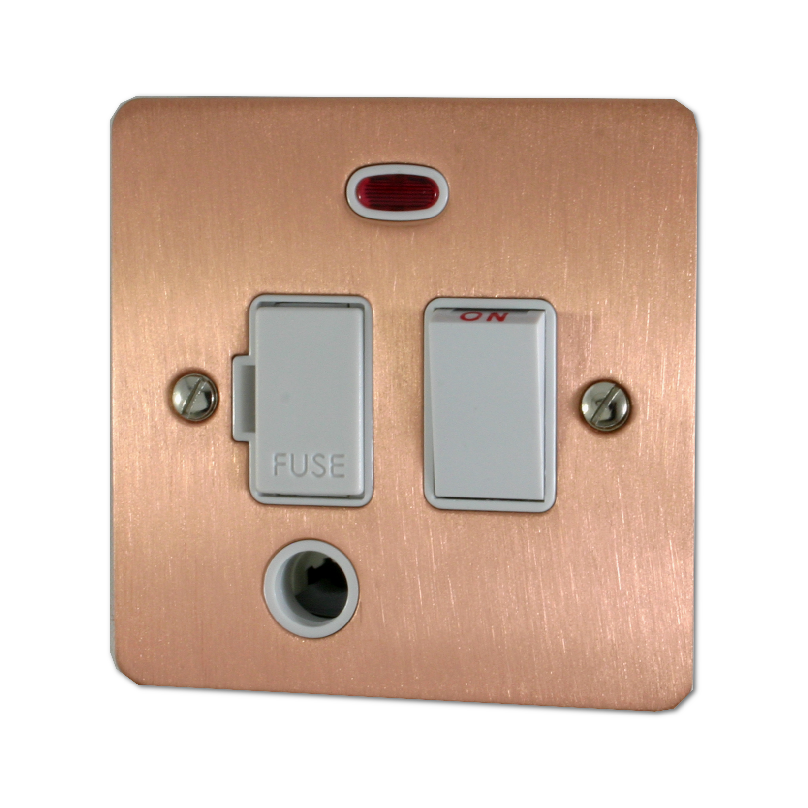 Flat Rose Gold Switched Fused Spur with Neon and Flex Outlet (White Switch) - G+H FRG77W