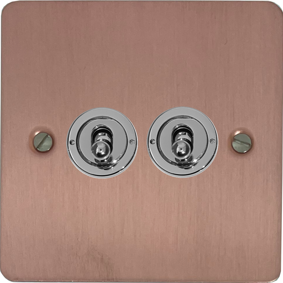 Flat Rose Gold Toggle Switch (2 Gang/Polished Chrome Toggle) - G+H FRG382-PC