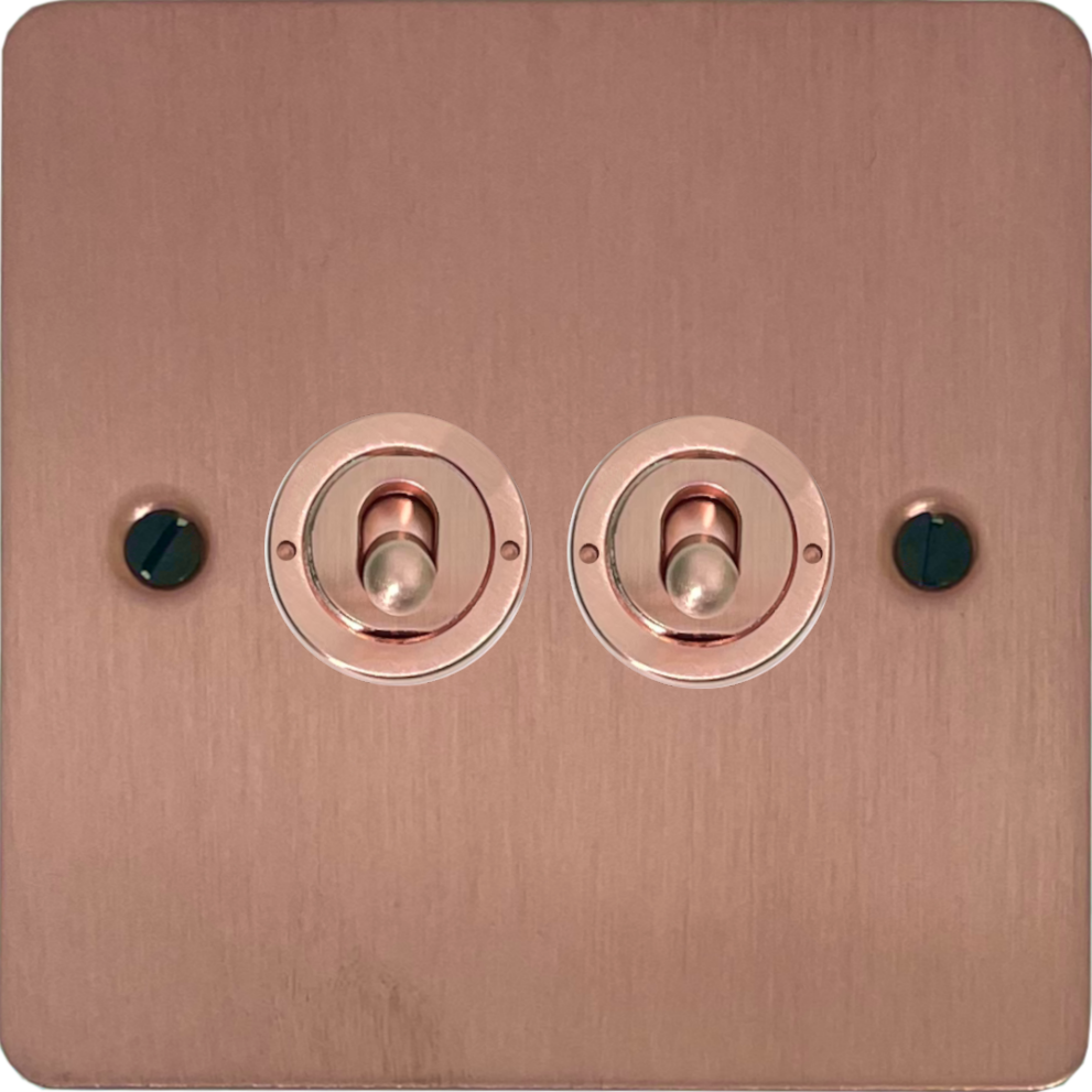 Flat Rose Gold Toggle Switch (2 Gang/Rose Gold Toggle) - G+H FRG382-RG