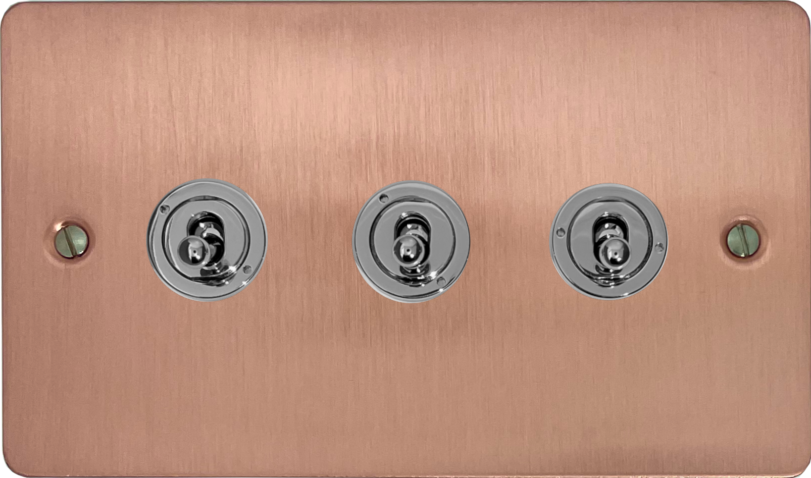Flat Rose Gold Toggle Switch (3 Gang/Polished Chrome Toggle) - G+H FRG383-PC