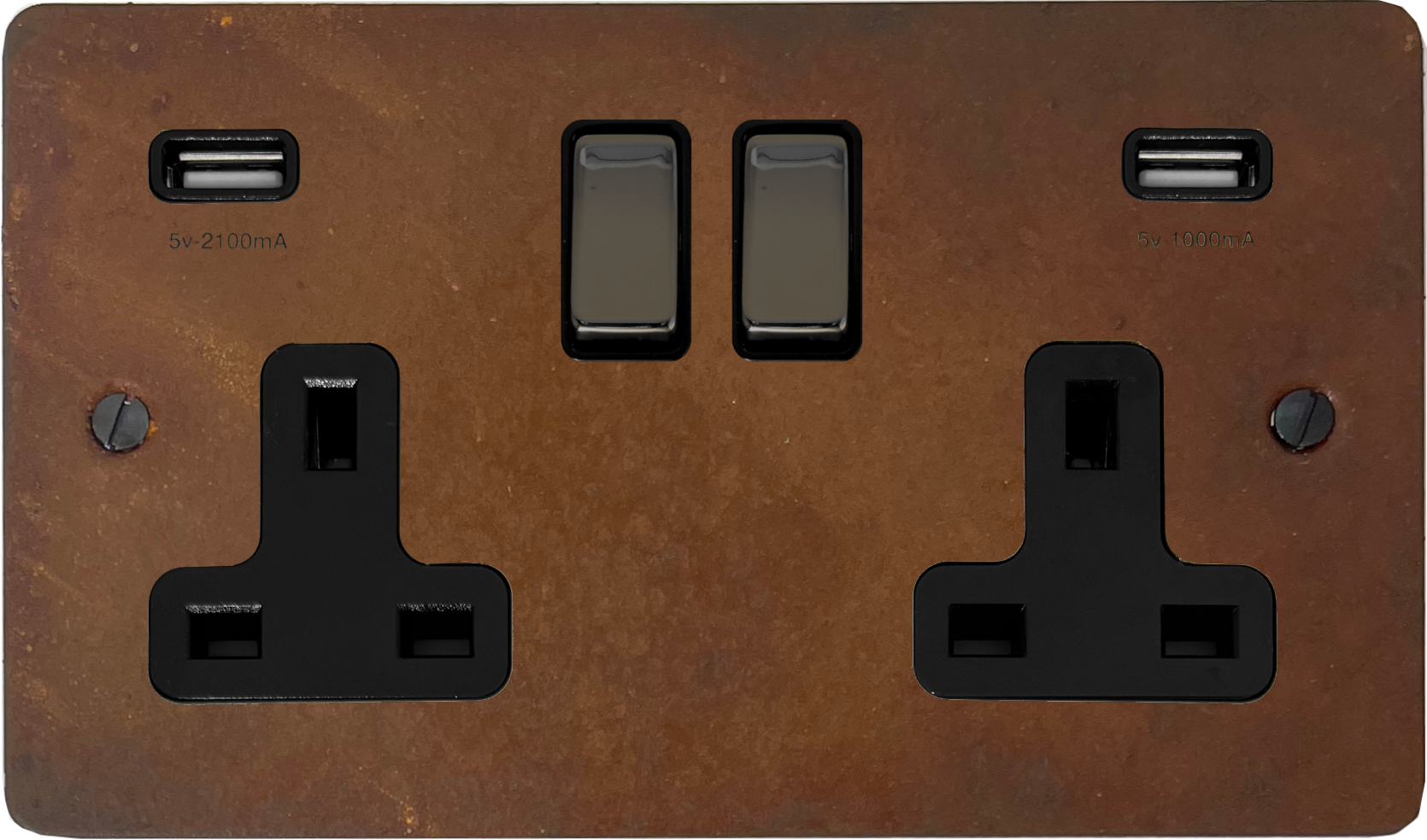 Flat Rust Double Socket with USB (Metal Switches) - G+H FRT3910