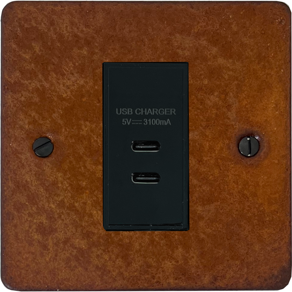 Flat Rust USB Charger (2x USB-C) (1 Gang/Black Insert) - G+H FRT42B