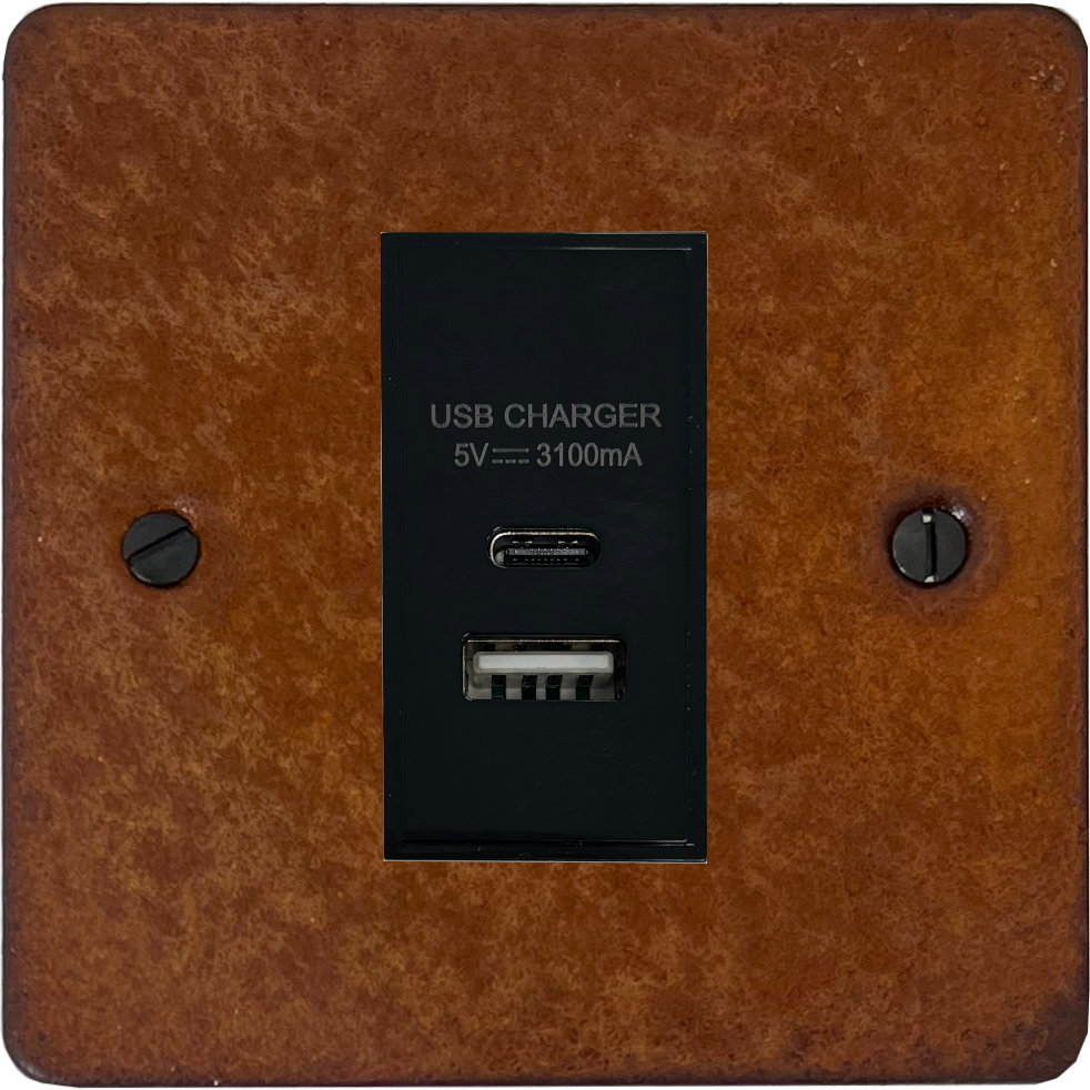 Flat Rust USB Charger (USB-A and USB-C) (1 Gang/Black Insert) - G+H FRT41B