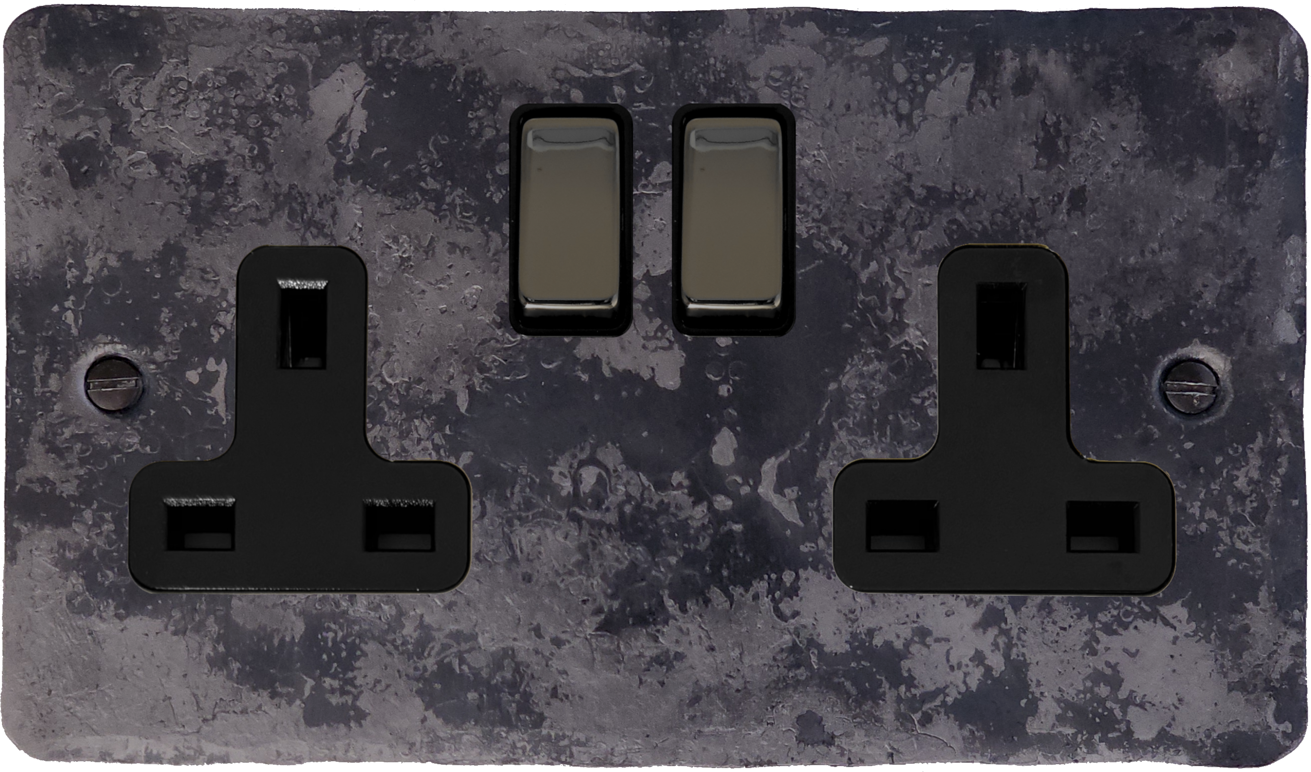 Flat Rustic Double Socket (Black Nickel Switch) - G+H FR310