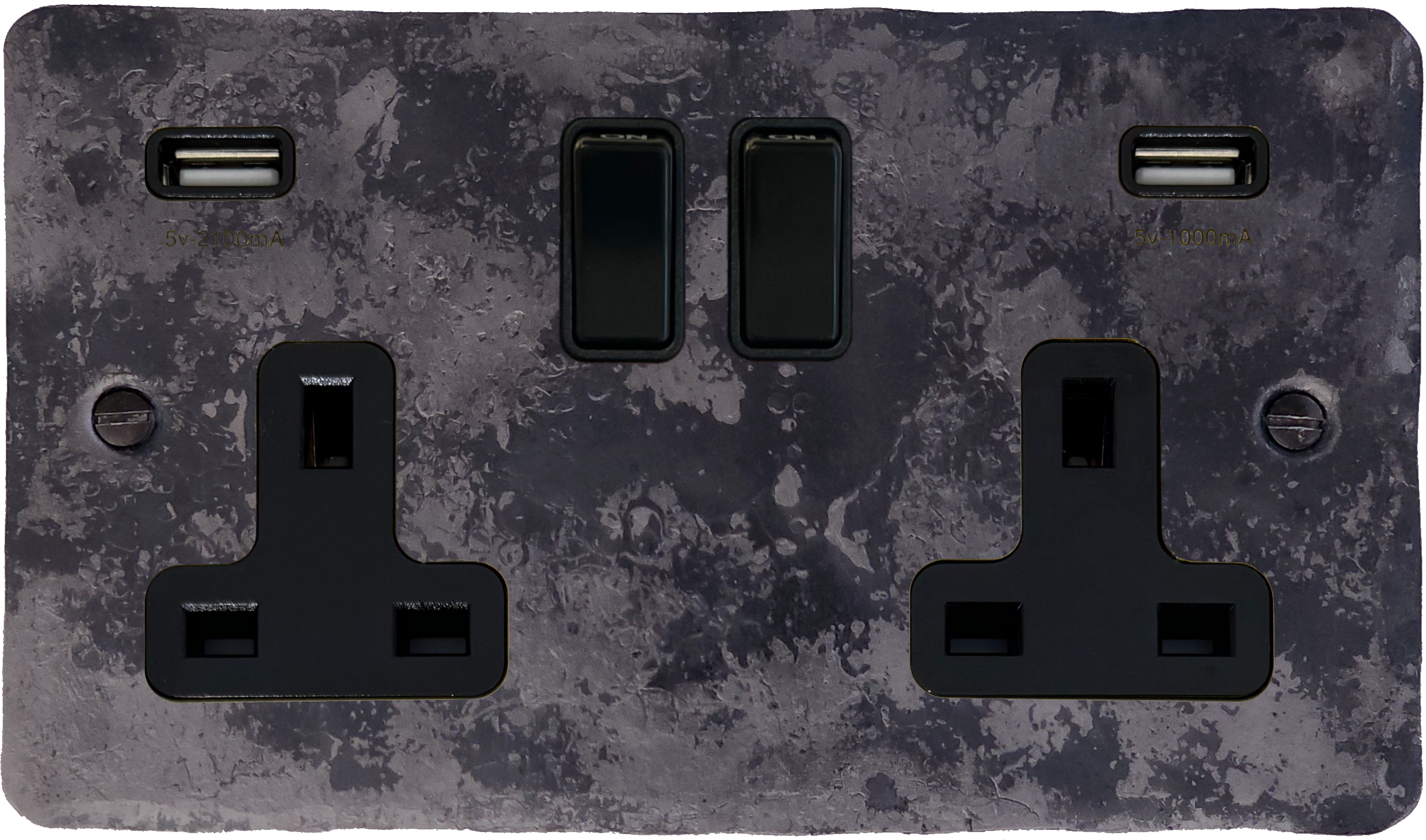 Flat Rustic Double Socket with USB (Black Switches) - G+H FR910B