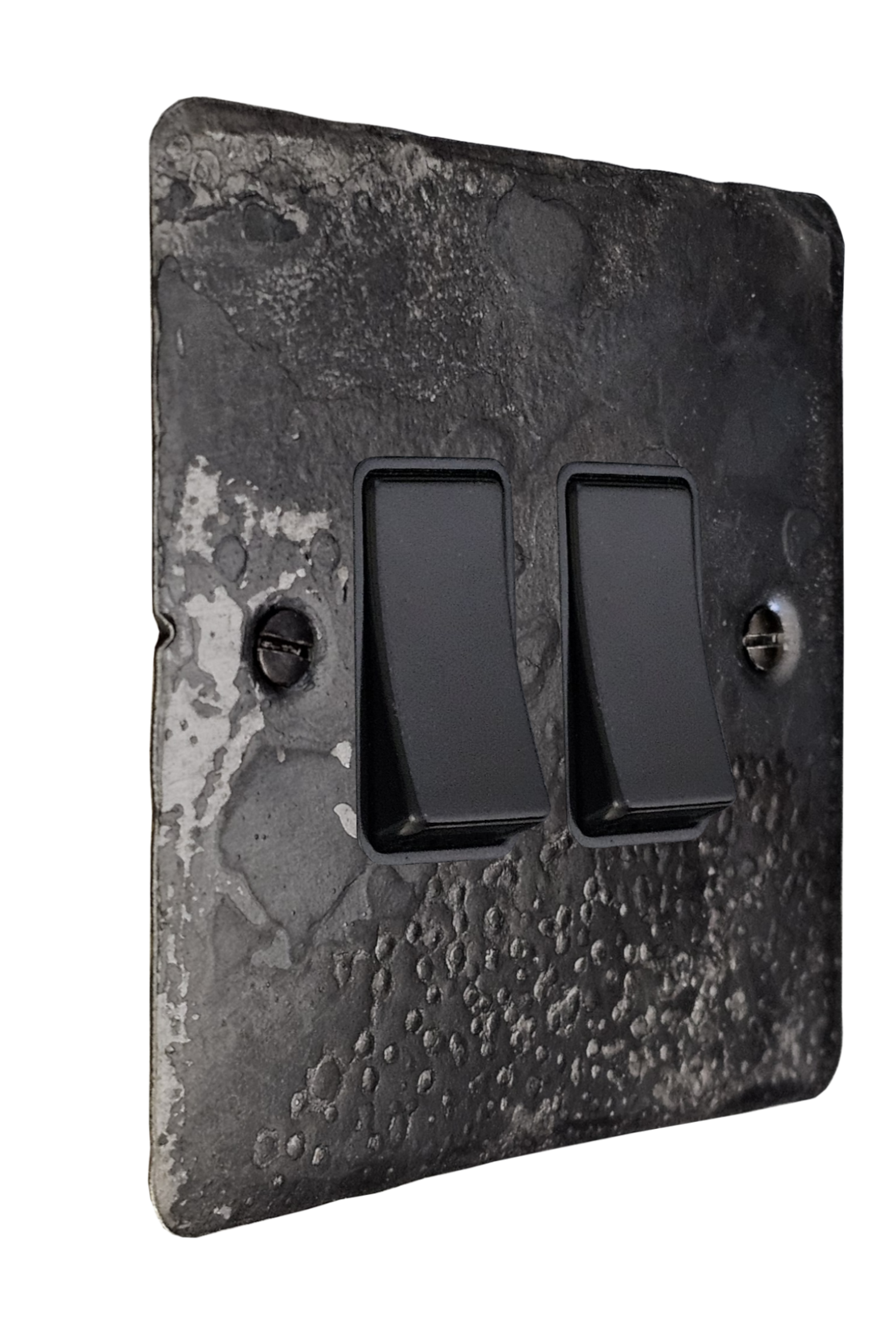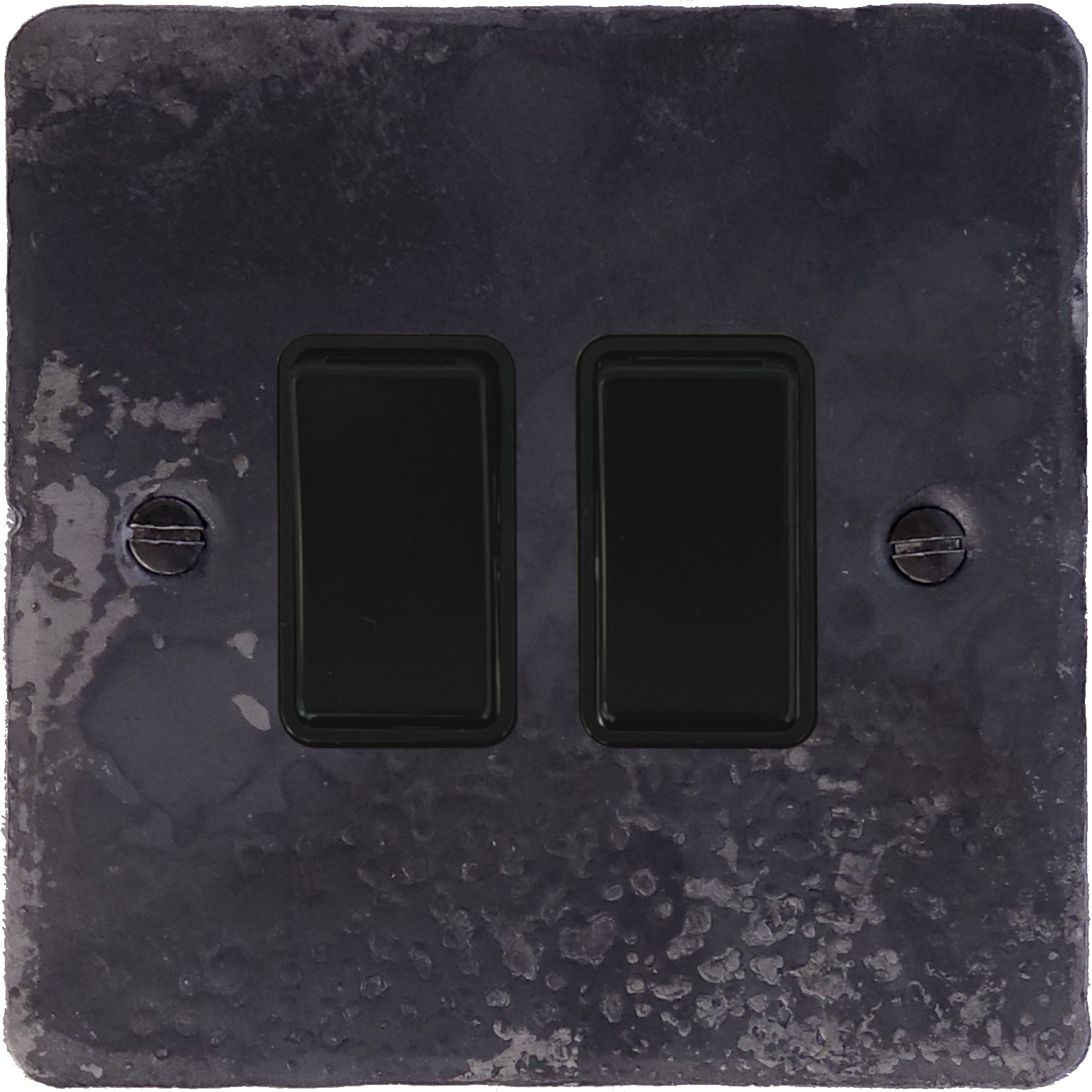 Flat Rustic Light Switch (2 Gang/Black Switches) - G+H FR2B