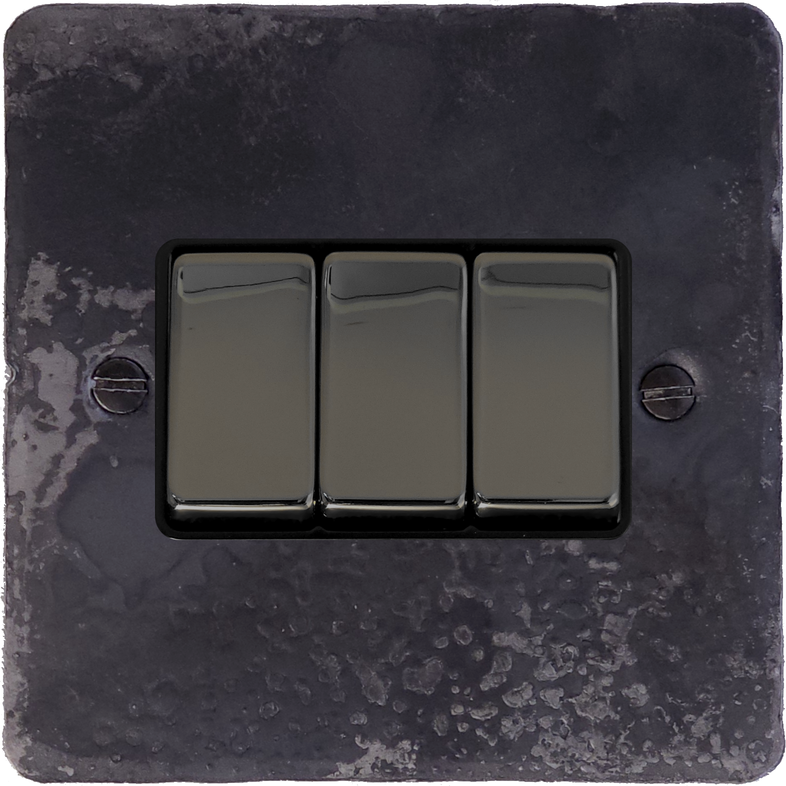 Flat Rustic Light Switch (3 Gang/Black Nickel Switches) - G+H FR303