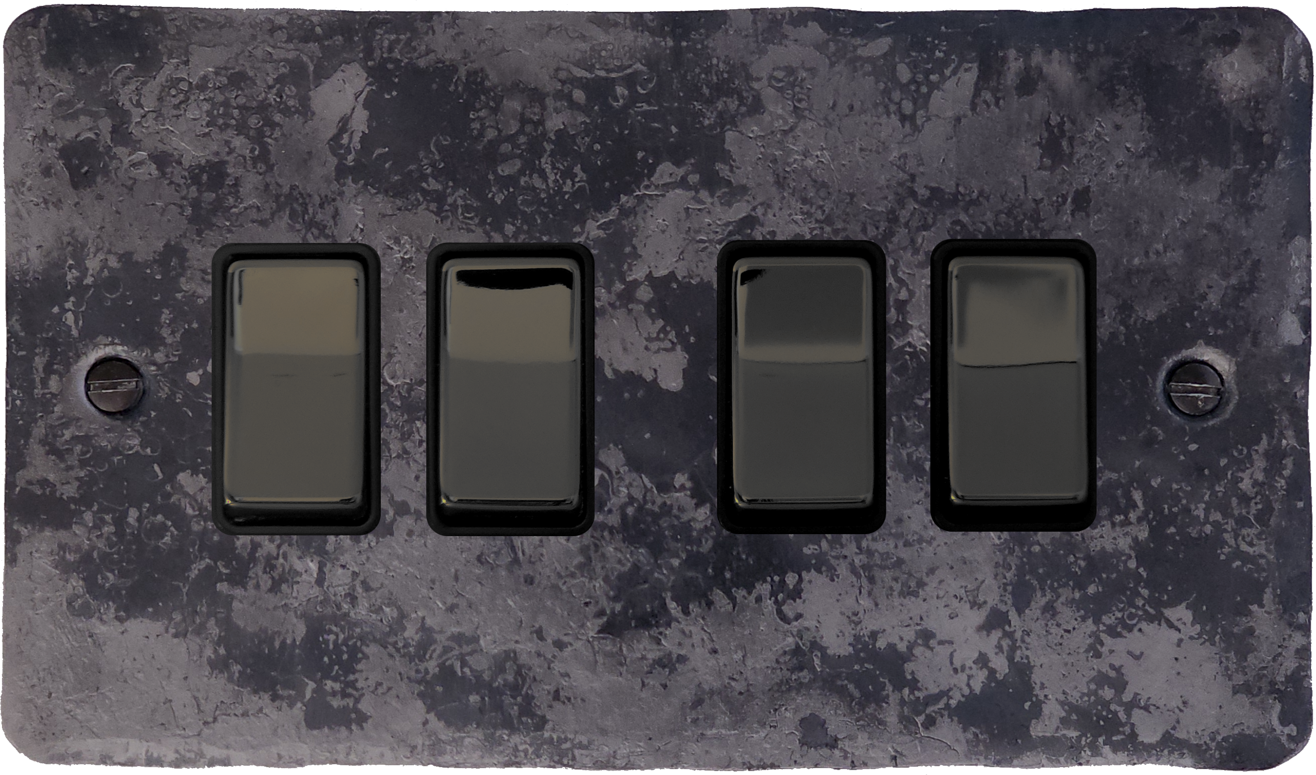 Flat Rustic Light Switch (4 Gang/Black Nickel Switches) - G+H FR304