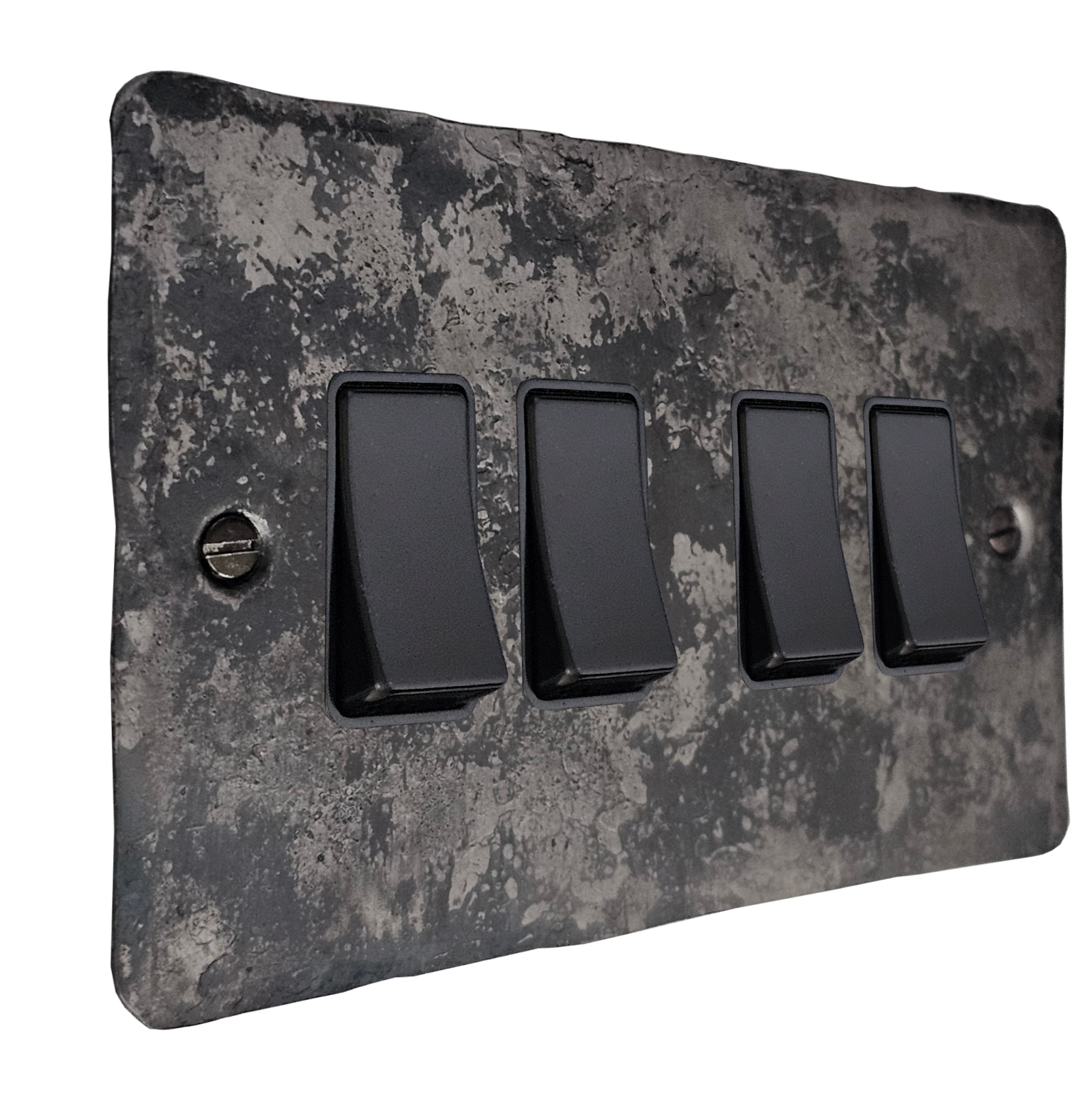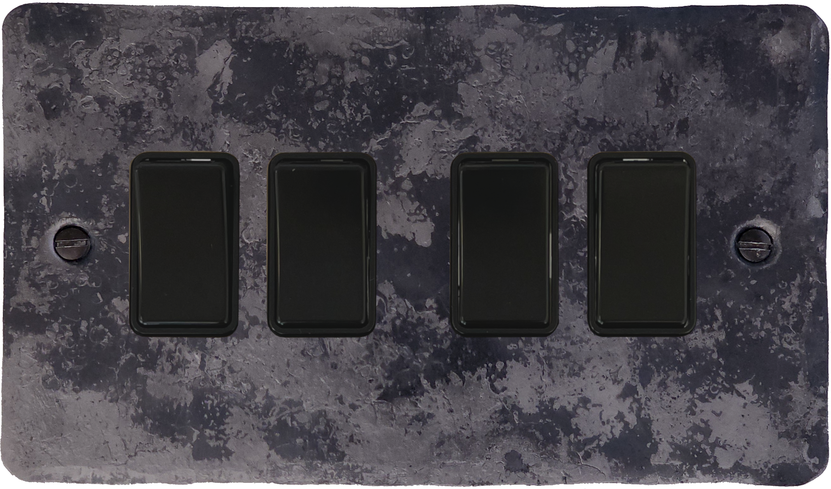 Flat Rustic Light Switch (4 Gang/Black Switches) - G+H FR4B