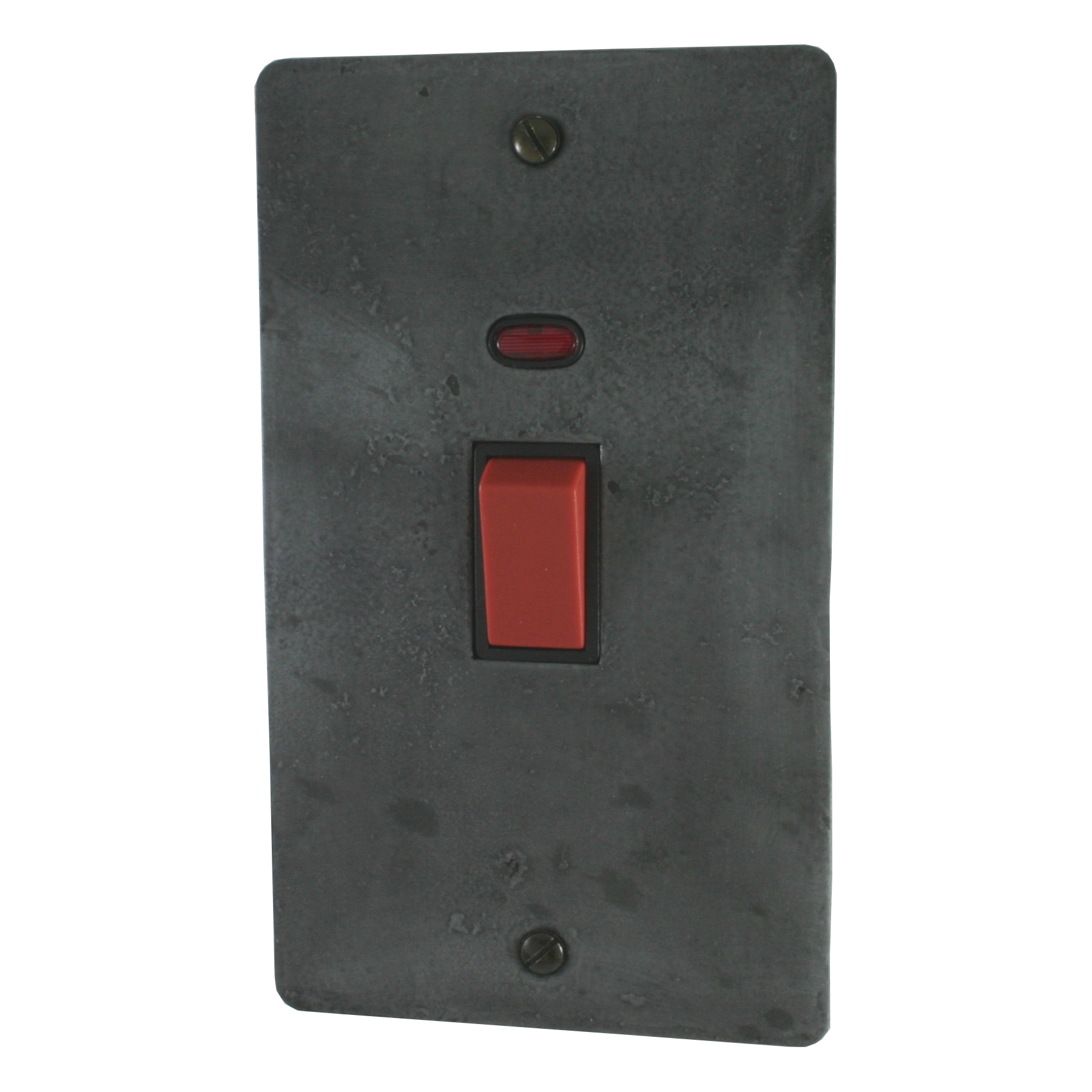 Flat Rustic Pewter 45A DP Switch (Black Insert/Vertical Plate) - G+H FRP28B