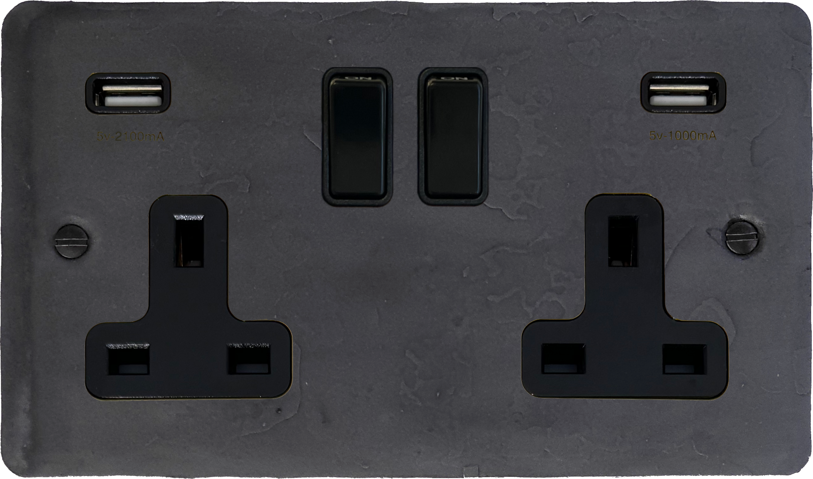Flat Rustic Pewter Double Socket with USB (Black Switches) - G+H FRP910B