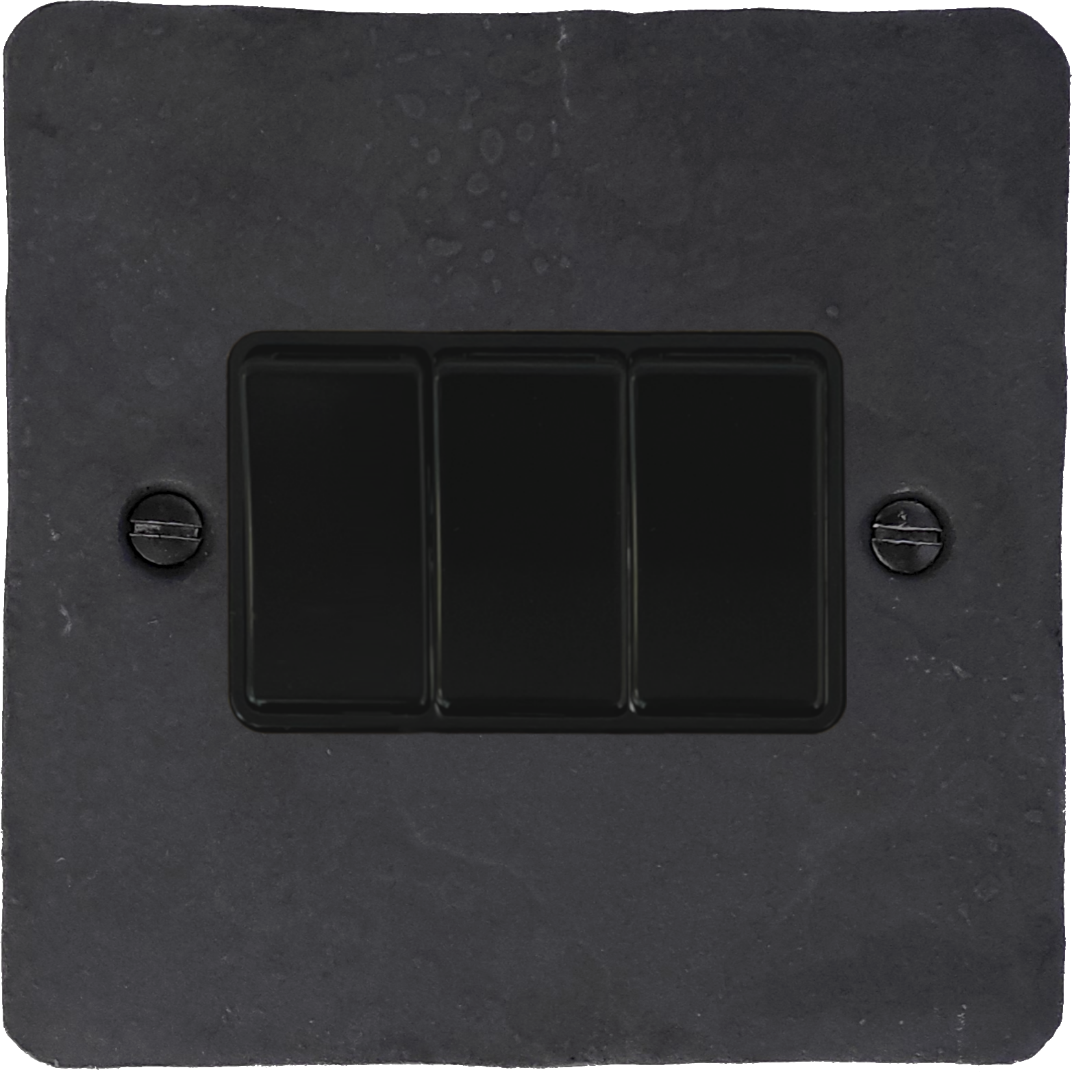 Flat Rustic Pewter Light Switch (3 Gang/Black Switches) - G+H FRP3B