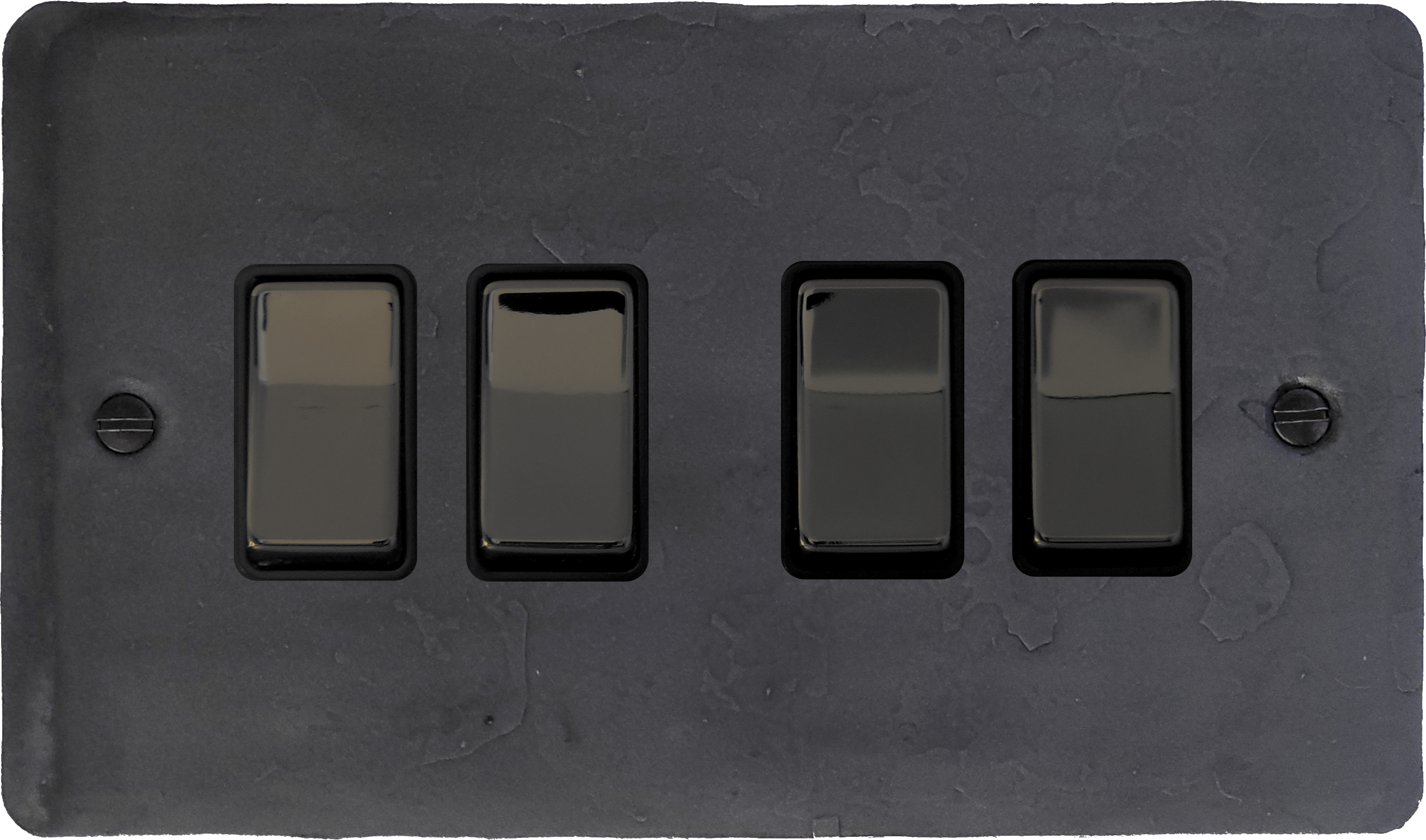 Flat Rustic Pewter Light Switch (4 Gang/Black Nickel Switches) - G+H FRP304-BN