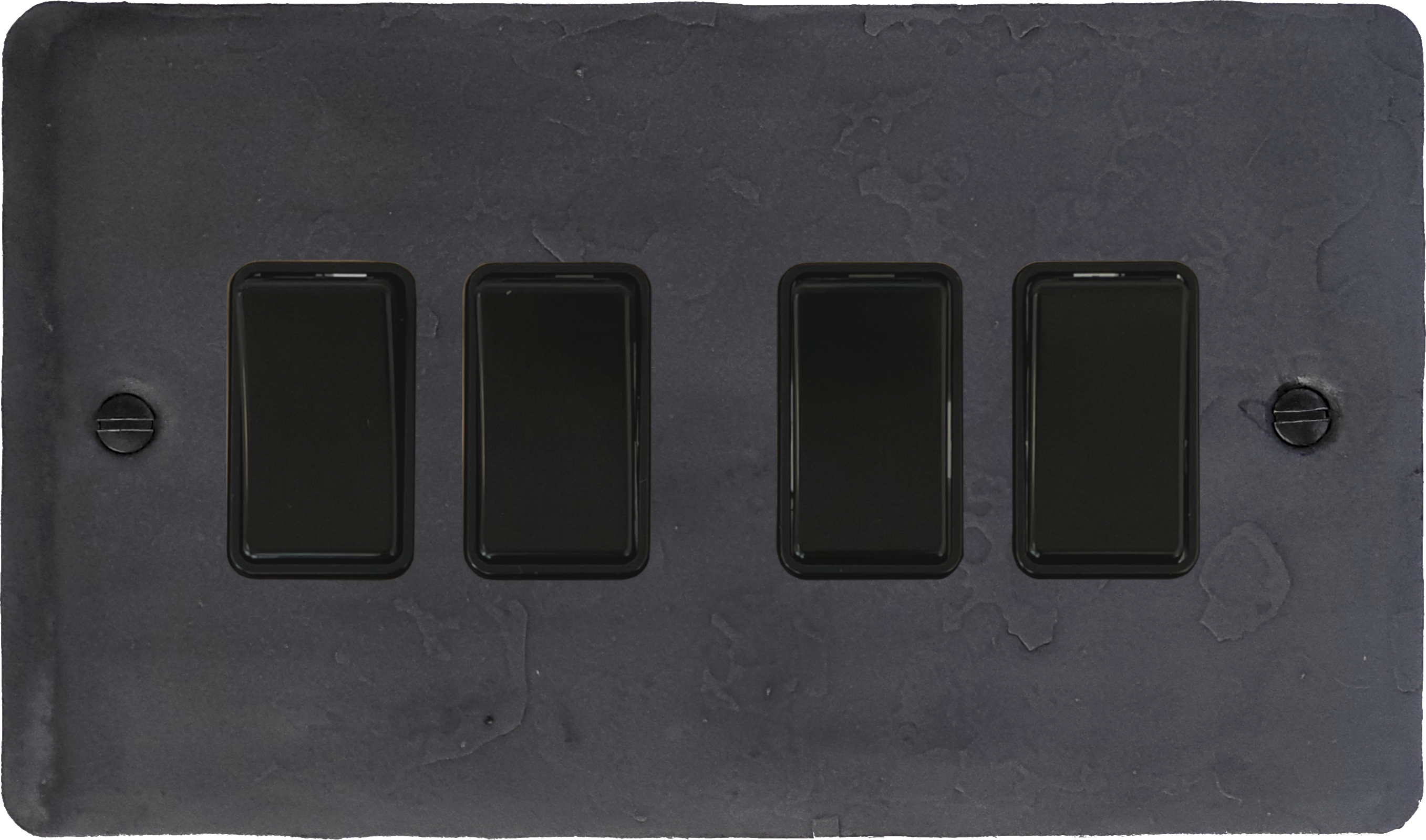 Flat Rustic Pewter Light Switch (4 Gang/Black Switches) - G+H FRP4B