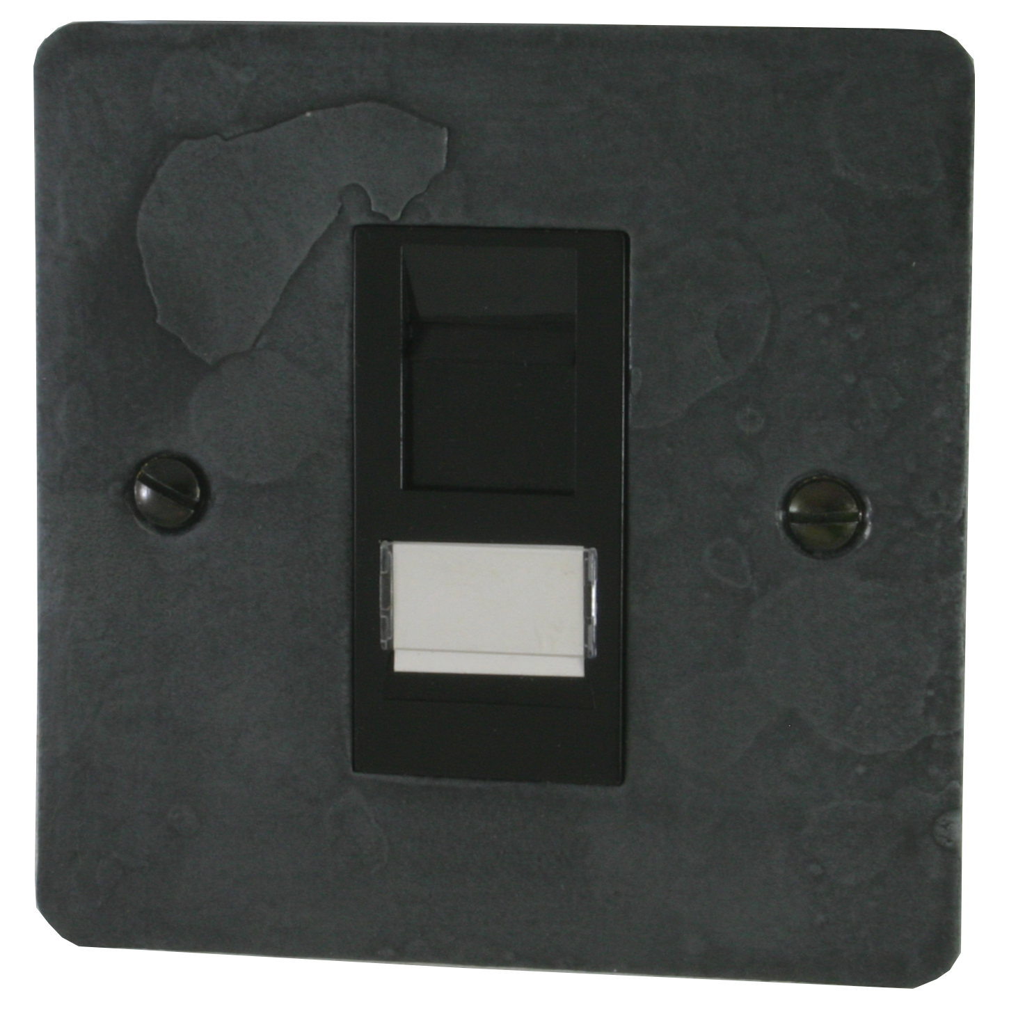 Flat Rustic Pewter RJ45 Socket (1 Gang/Black Insert)