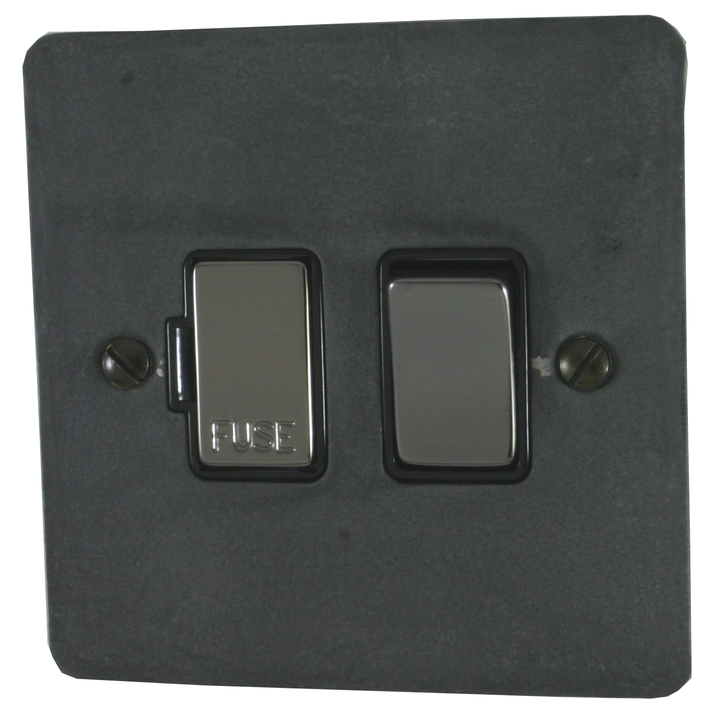 Flat Rustic Pewter Switched Fused Spur (Black Nickel Switch)