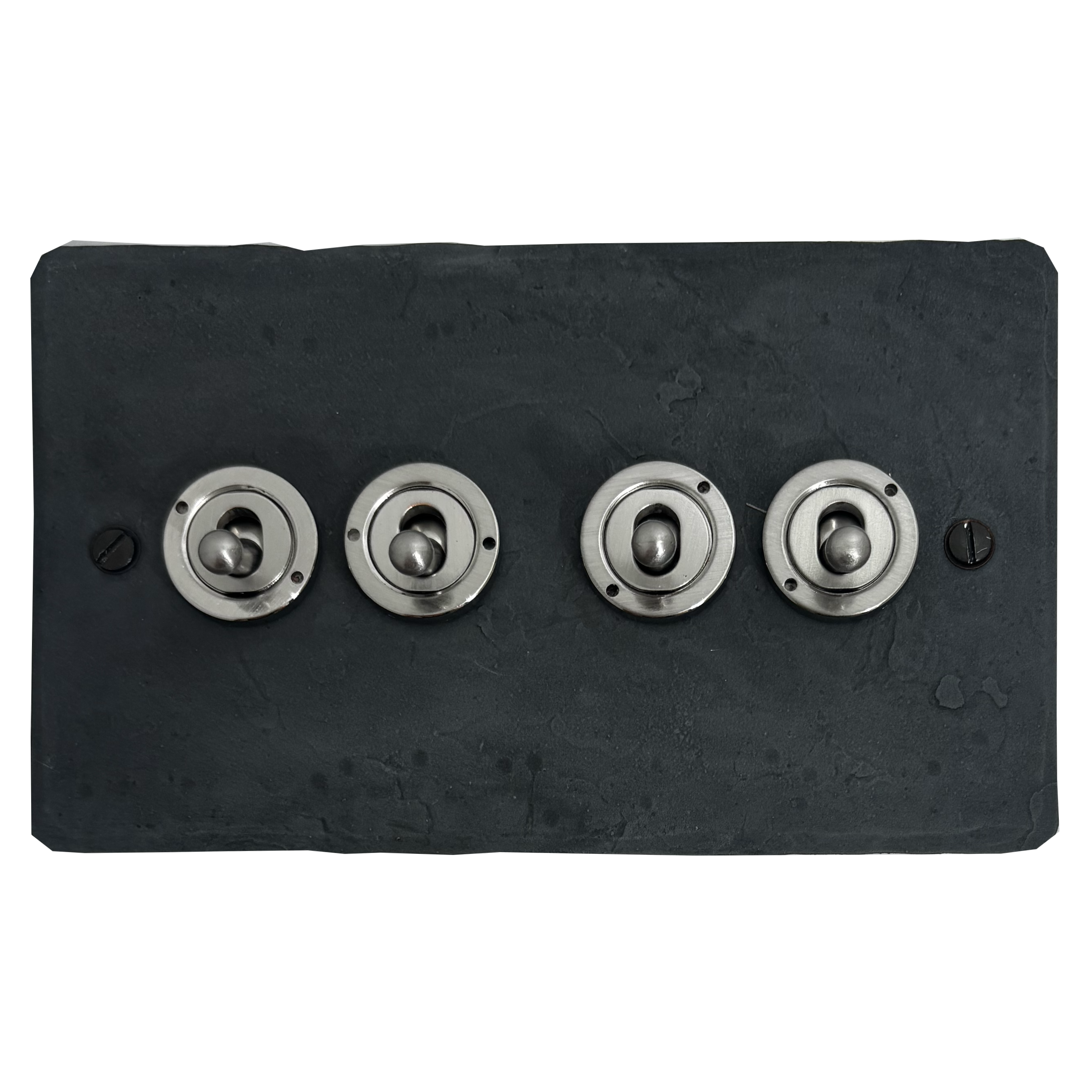 Flat Rustic Pewter Toggle Switch (4 Gang/Brushed Steel Toggle)