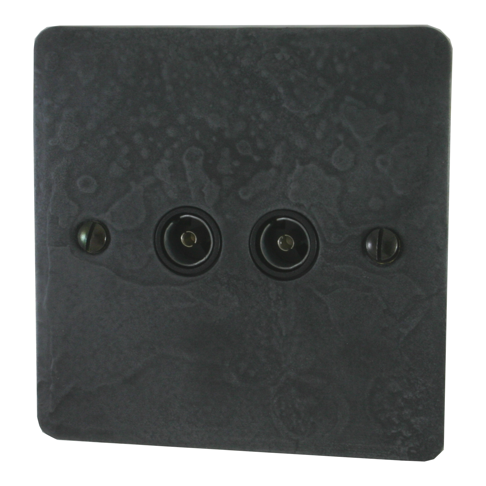 Flat Rustic Pewter TV Socket (2 Gang/Black Insert)