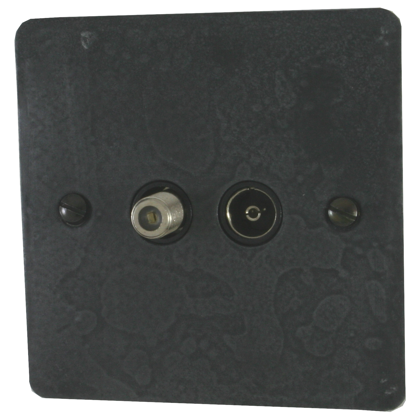 Flat Rustic Pewter TV/Satellite Socket (Black Insert)