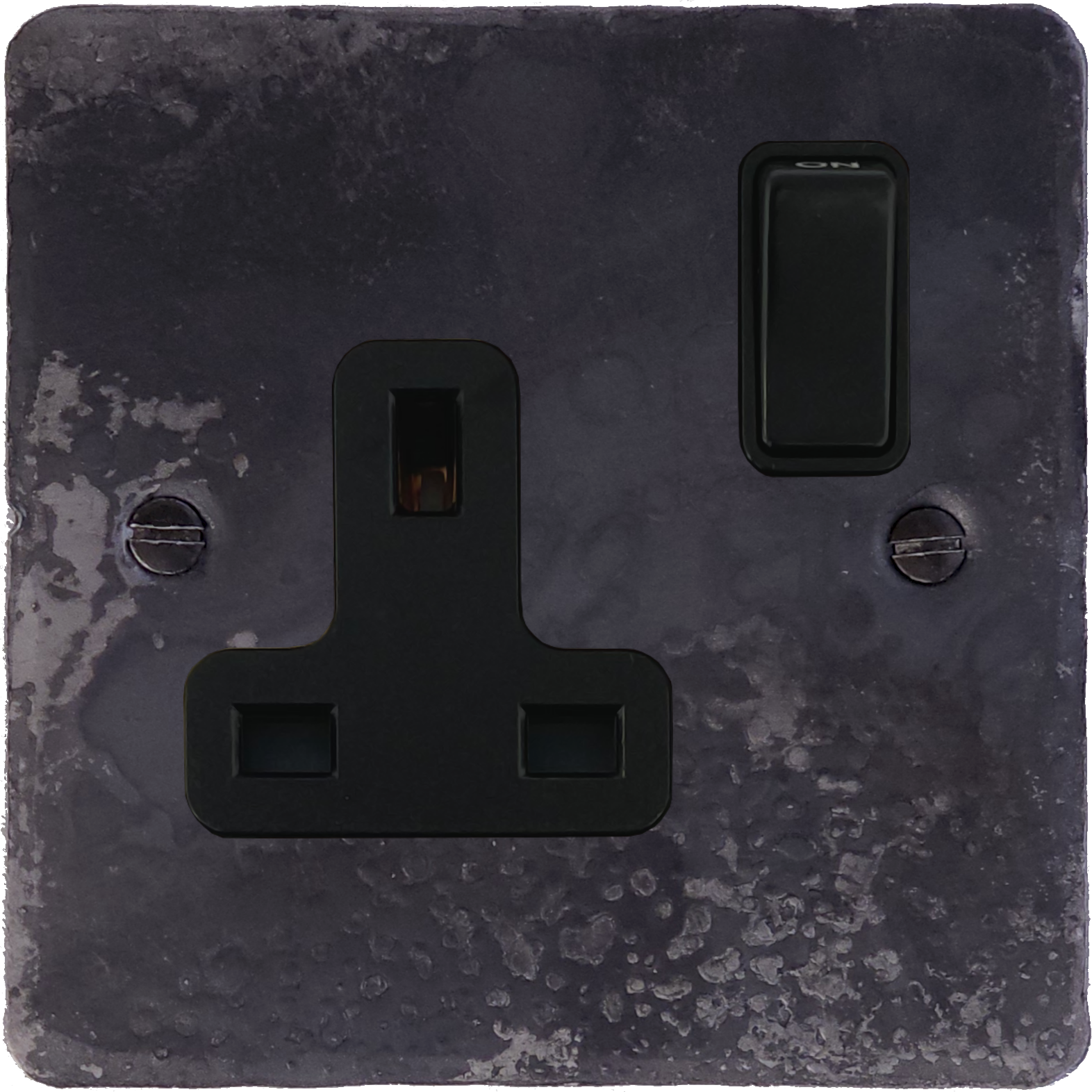 Flat Rustic Single Socket (Black Switch) - G+H FR9B