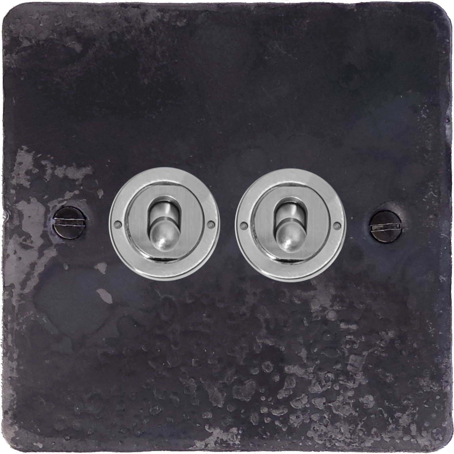 Flat Rustic Toggle Switch (2 Gang/Satin Chrome Toggles)