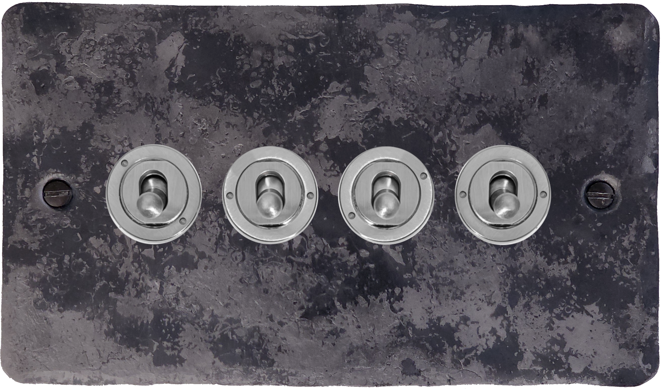 Flat Rustic Toggle Switch (4 Gang/Satin Chrome Toggles) - G+H FR384-SC